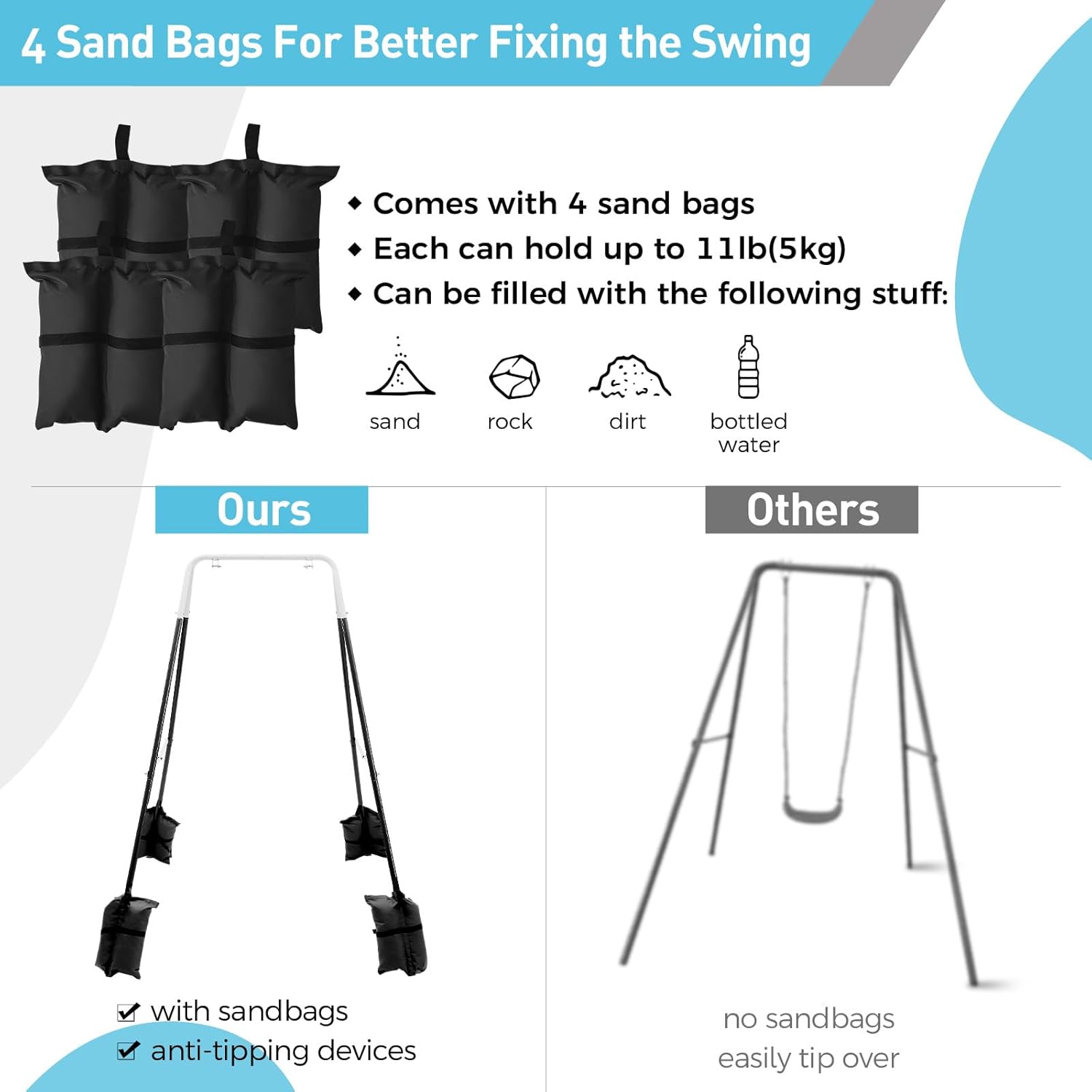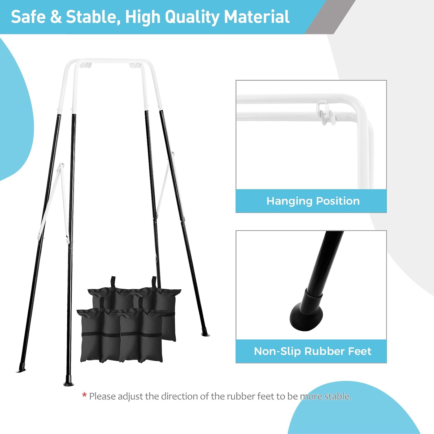 【Certificato CPC e CE, sicuro e durevole】 La sicurezza è una priorità. Il nostro supporto per altalena per bambini è stato testato e certificato da CPSC e ASTM negli Stati Uniti e dallo standard europeo EN 71 nell'UE. La struttura A-frame lo rende stabile. Realizzato in robusto acciaio, il telaio girevole è stabile e resistente. I piedini in gomma antiscivolo aiutano a migliorare la stabilità. Suggerimento: regolare i piedini in gomma nella direzione corretta per rendere stabile il supporto. 【Viene fornito con 4 sacchi di sabbia, molto più sicuro】 Il nostro set altalena viene fornito con 4 sacchi di sabbia e ogni sacco di sabbia può contenere fino a 5 kg. Puoi inserire sabbia, roccia o acqua in bottiglia e fissarli ai piedini oscillanti, che rafforzano la stabilità del supporto dell'altalena per evitare il ribaltamento, abbastanza robusto e sicuro per far giocare i tuoi bambini più grandi. 【Facile da montare, pieghevole e comodo da riporre】 Il nostro telaio oscillante per bambini è facile da montare. Con istruzioni chiare e dettagliate, bastano 10 minuti. Puoi assemblarlo con i tuoi bambini, trascorrere del tempo felice in famiglia ed esercitare l'abilità pratica dei bambini. Il supporto in metallo può essere piegato, facile da riporre e trasportare. Puoi installarlo in casa o in giardino per far giocare i tuoi bambini. Puoi persino portarlo fuori durante il viaggio o un picnic. 【Dimensioni e peso del cuscinetto, vari usi】 Il supporto girevole Funlio è 120 cm * 158 cm * 155 cm. Il peso massimo del cuscinetto è 200bls/90kg. La dimensione è Il supporto in metallo può essere utilizzato per altalene/baby jumper/sedie amache. Pratici piccoli mobili per bambini. Man mano che il tuo bambino cresce, diverse attrezzature da gioco possono portare un divertimento senza fine per i tuoi bambini. 【Politica di reso di 90 giorni e servizi di qualità di 3 anni】FUNLIO si impegna a fornire ai nostri clienti prodotti e servizi eccezionali. Offriamo una politica di reso di 90 giorni e un servizio di qualità di 3 anni. In caso di parti mancanti o danneggiate durante il trasporto, ti preghiamo di contattarci immediatamente. Ti aiuteremo inviando parti di ricambio o sostituendo il prodotto in 2 giorni lavorativi. In entrambi i casi, riceverai anche un reso del 10%.