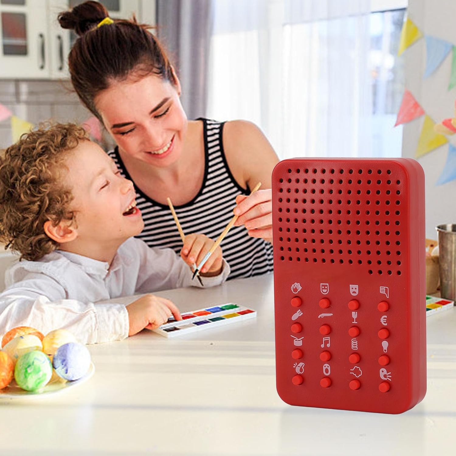 [Pratico Maker Sound] Ideale per sorprendenti amici e familiari con suoni come risate, applausi, corna e batteria [Migliora l'atmosfera del partito] Porta risate e crea momenti memorabili durante le feste con questo divertimento giocattolo audio [Divertente dono creativo] Buon che combina divertimento e creatività per chiunque ami una bella risata [Compatto e conveniente] Design leggero per un facile utilizzo e portabilità, si adatta in tasca per le sorprese in viaggio [Varietà di effetti sonori unici] Fatti alle prese divertenti con 16 interessanti effetti sonori, accendendo conversazioni e risate