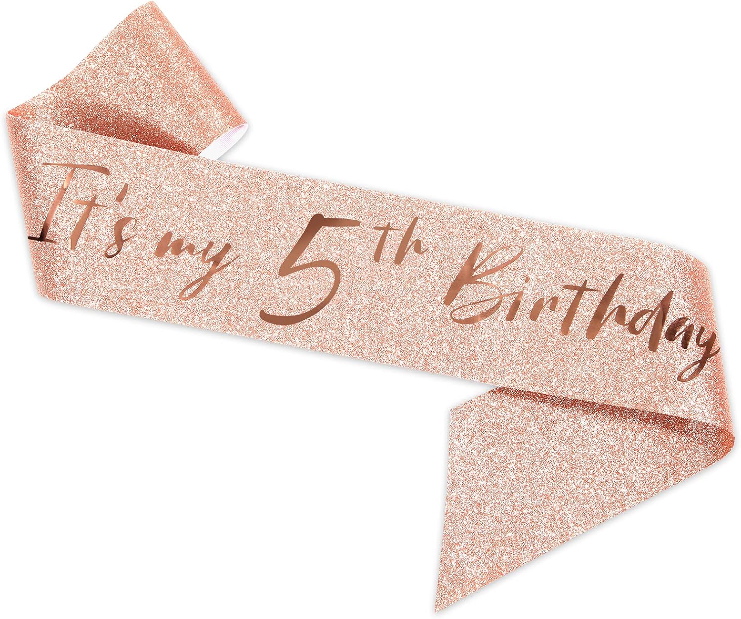 Fusciacca e diadema del 5 ° compleanno per ragazze, Fusciacca in oro rosa 5 e favolosa fascia e diadema per ragazze, 5 ° regalo di compleanno per buon compleanno