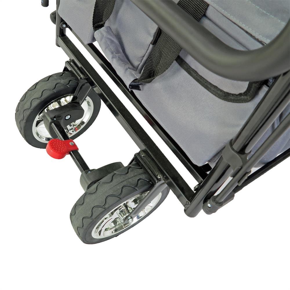 Prodotto di punta della serie CT con freni anteriori e posteriori, tetto protetto dai raggi UV e barra di spinta posteriore - Il CT700 Carrello a mano pieghevole con ruote cromate su pneumatici di gomma, adatto ai bambini Asta telescopica per la trazione, può essere utilizzata anche quando è piegata. Accessori opzionali disponibili: parapioggia, cinture di sicurezza, tappetini a cuscino d'aria Pavimento imbottito in schiuma, tutte le traverse con protezione imbottita per il trasporto di bambini Supporto stabile quando è piegato, ma largo solo 15 cm; completamente assemblato: disimballare, aprire e andare!