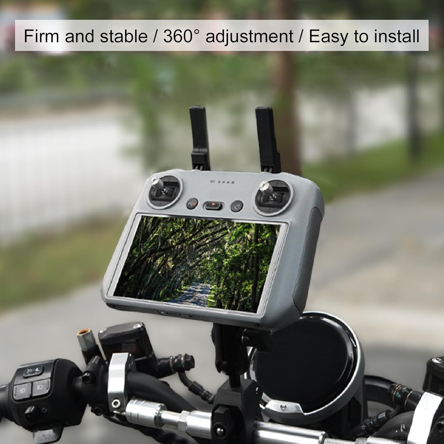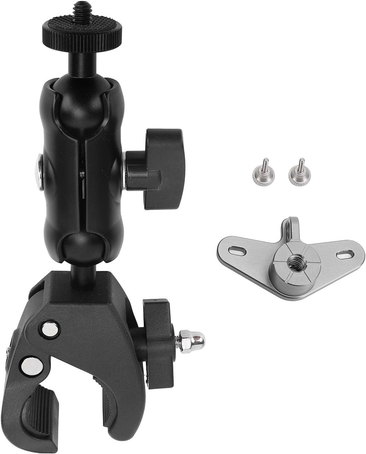 [Misura universale] Adatto a manubri da 2,5 cm a 5,5 cm di diametro, adatto per biciclette, motociclette e scooter. [Compatibilità estesa] La vite da 1/4 può ospitare apparecchiature fotografiche aggiuntive, offrendo versatilità per varie esigenze. [Progettato specificatamente per controller di droni] Design a doppia testa a sfera per flessibilità e regolazione, robusta struttura in lega di alluminio maggiore longevità. [Installazione semplice] Design intuitivo per un'installazione e una rimozione rapida senza strumenti aggiuntivi, migliorando la comodità per le attività di volo con droni. [Volo a mani libere] Monta in modo sicuro il controller del drone per un'esperienza di volo e interattiva mantenendo le mani libere per il ciclismo.