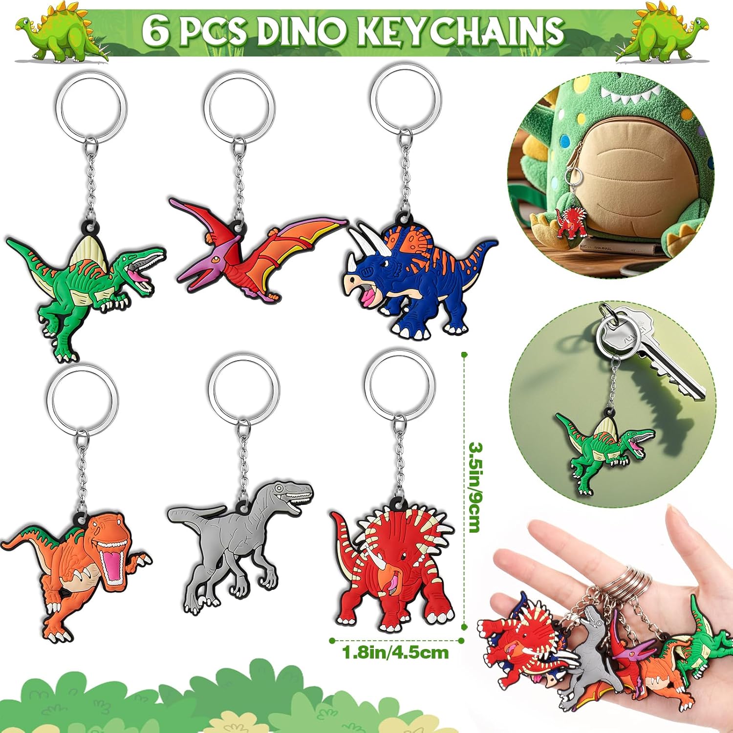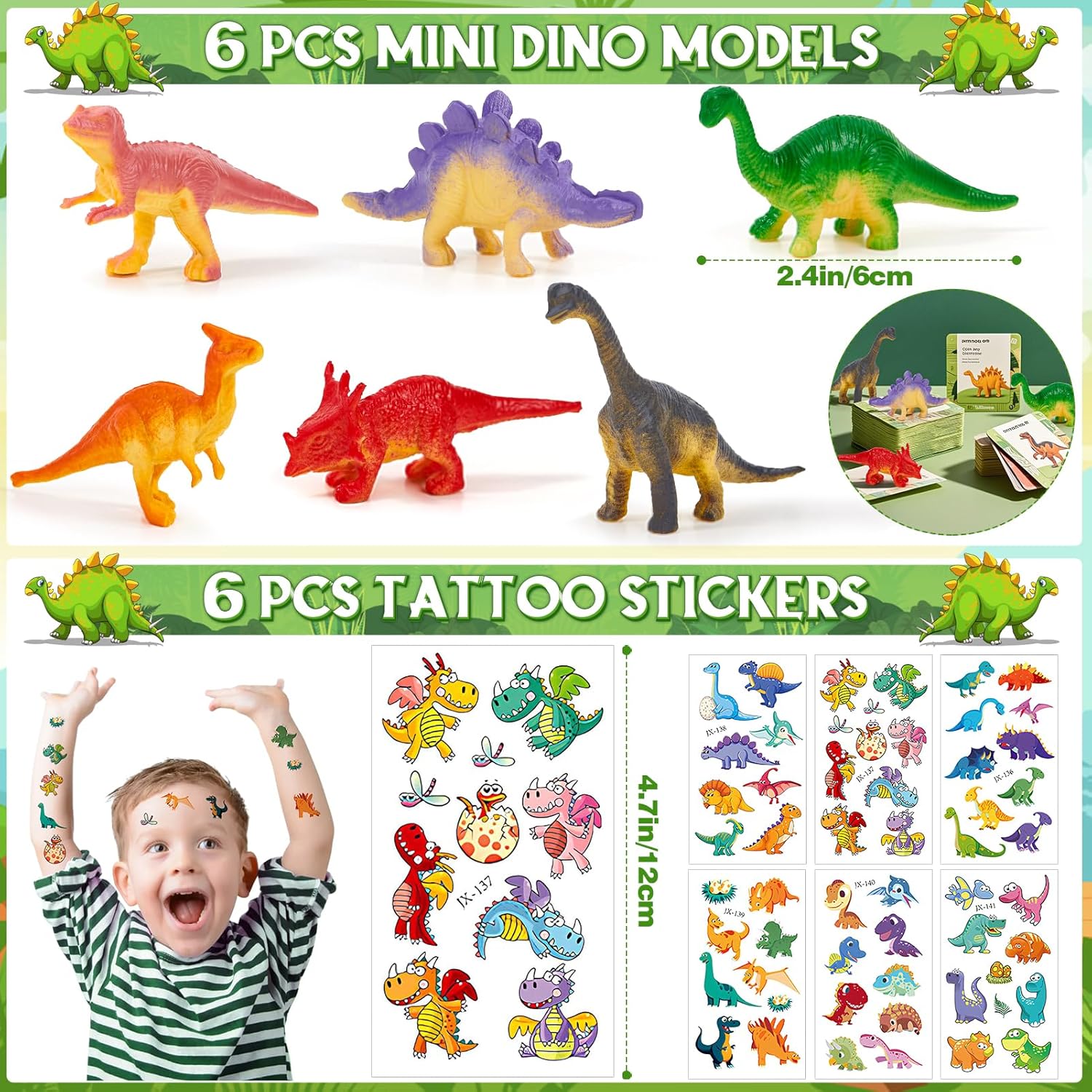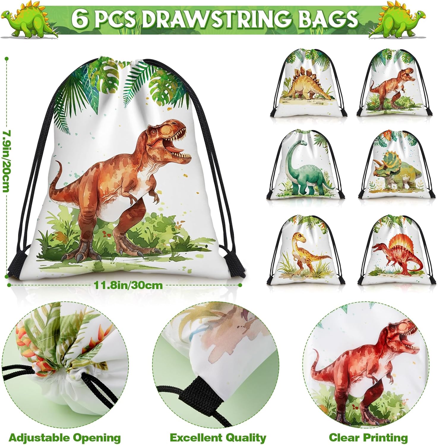 Borsa da festa con dinosauri per il compleanno dei bambini: il set contiene 6 zaini di dinosauri con coulisse, 6 fasce per capelli di dinosauri, 6 mini modelli di dinosauri, 6 portachiavi di dinosauri e 6 adesivi per tatuaggi. Accogli i bambini al Dino Party con piccoli regali e giocattoli. Set regalo perfetto per la festa dei dinosauri per bambini di 3, 4, 5, 6, 7 e 8 anni. Zaino Dino multifunzionale: lo zaino con coulisse ha sei diversi modelli di dinosauri con stampa trasparente. La borsa con chiusura a cordoncino può contenere tutti i giocattoli Dino Party, così i bambini potranno organizzare una festa per bambini allegra. I bambini possono anche indossare la borsa con coulisse Dino tutti i giorni e utilizzarla in occasioni come andare a scuola, fare escursioni, andare in bicicletta e fare alpinismo. Materiale di alta qualità: la fascia per dinosauri è elastica e adatta a ragazze e ragazzi dai 5 ai 12 anni. La parte decorativa è realizzata in materiale feltro, che ha una forma tridimensionale e colori vivaci. Gli adesivi per tatuaggi sono sicuri per la pelle dei bambini e facili da pulire. Il modello Mini Dino ha bordi lisci e una forma realistica. Il portachiavi dinosauro è realizzato in silicone di alta qualità ed è inodore. Ricordo divertente: con il modello Mini Dino i bambini possono imitare i combattimenti dei dinosauri e osservare la struttura corporea dei dinosauri. I bambini possono indossare fasce per la testa e trasformarsi in diversi tipi di dinosauri. Puoi anche mettere adesivi per tatuaggi sulle braccia e sul viso per renderli carini e interessanti. Adatto a molte occasioni: le nostre bomboniere con dinosauri sono adatte a molte occasioni, adatte per compleanni di bambini, regali per feste di dinosauri, regali di avventura, regali di Natale, carnevali, ripieno di dinosauro pinata, premi per la classe. Lascia che i bambini sperimentino l'interessante mondo delle feste dei dinosauri!