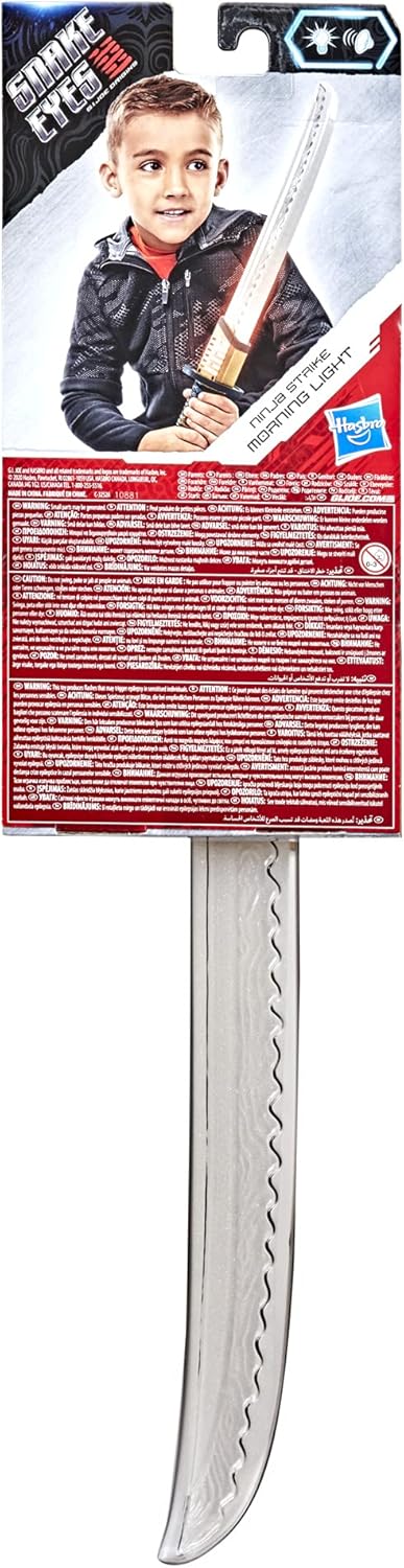 An ancient weapon of the Arashikage clan, Morning Light is a razor-sharp katana passed down only to family members worthy enough to wield it. Kids can imagine slashing into action and adventure as Snake Eyes! Enter a world of cutting-edge technology, traditional Ninjutsu weapons, breathtaking martial arts, and Next-Gen Ninjas with the Snake Eyes: G.I. Joe Origins Snake Ninja Strike Morning Light electronic sword! With the Morning Light sword, kids ages 5 and up can imagine the exciting ninja-battling action and excitement of the G.I. Joe universe! Featuring movie-inspired detail and design, as well as fun electronic sound and light effects, boys and girls will love creating favorite moments from the Snake Eyes movie! Look for movie- and entertainment-inspired G.I. Joe roleplay toys and action figures to collect, swap with friends, or give as gifts! Each sold separately. Subject to availability. G.I. Joe and all related characters are trademarks of Hasbro.