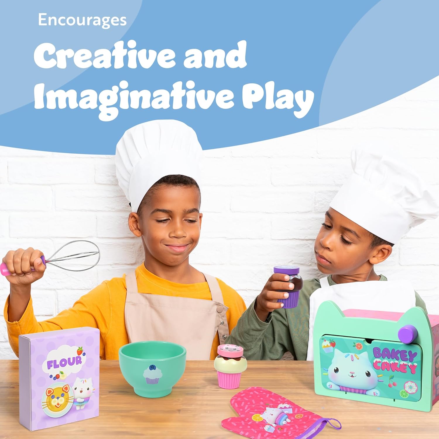 Cuocere e giocare con la casa delle bambole di Gabby: lascia che i piccoli fornai sbattano, mescolino e cuocano con questo emozionante set da gioco Gabby's Dollhouse. Dotato di tutti gli elementi essenziali per creare torte finte da zero, questo set dà vita al gioco fantasioso. Kit di cottura completo per bambini: include una ciotola, una frusta, una farina, uova e un forno con orecchie di gatto, in modo che i bambini possano rompere, mescolare e cuocere le loro creazioni, proprio come in una vera cucina! Una volta che le torte sono pronte, possono essere confezionate nella scatola di consegna per un maggiore divertimento. Incoraggia il gioco creativo ed educativo: perfetto per giochi di ruolo e narrazione, questo set da forno sviluppa abilità motorie, creatività e risoluzione dei problemi mentre i bambini si impegnano in finte avventure di cottura con i loro personaggi preferiti della casa delle bambole di Gabby. Esperienza di gioco realistica: con accessori da forno realistici, i bambini possono recitare scenari in cucina, imparando le misurazioni, la miscelazione e il lavoro di squadra in modo divertente e interattivo, ideale per giocare da soli o di gruppo. Regalo perfetto per i fan della casa delle bambole di Gabby: un fantastico regalo di compleanno o di Natale per i giovani fornai che amano la casa delle bambole di Gabby! Leggero e facile da riporre, questo divertente set da forno è ideale per sale giochi, asili nido o giochi da portare con sé. ha un menu contestuale
