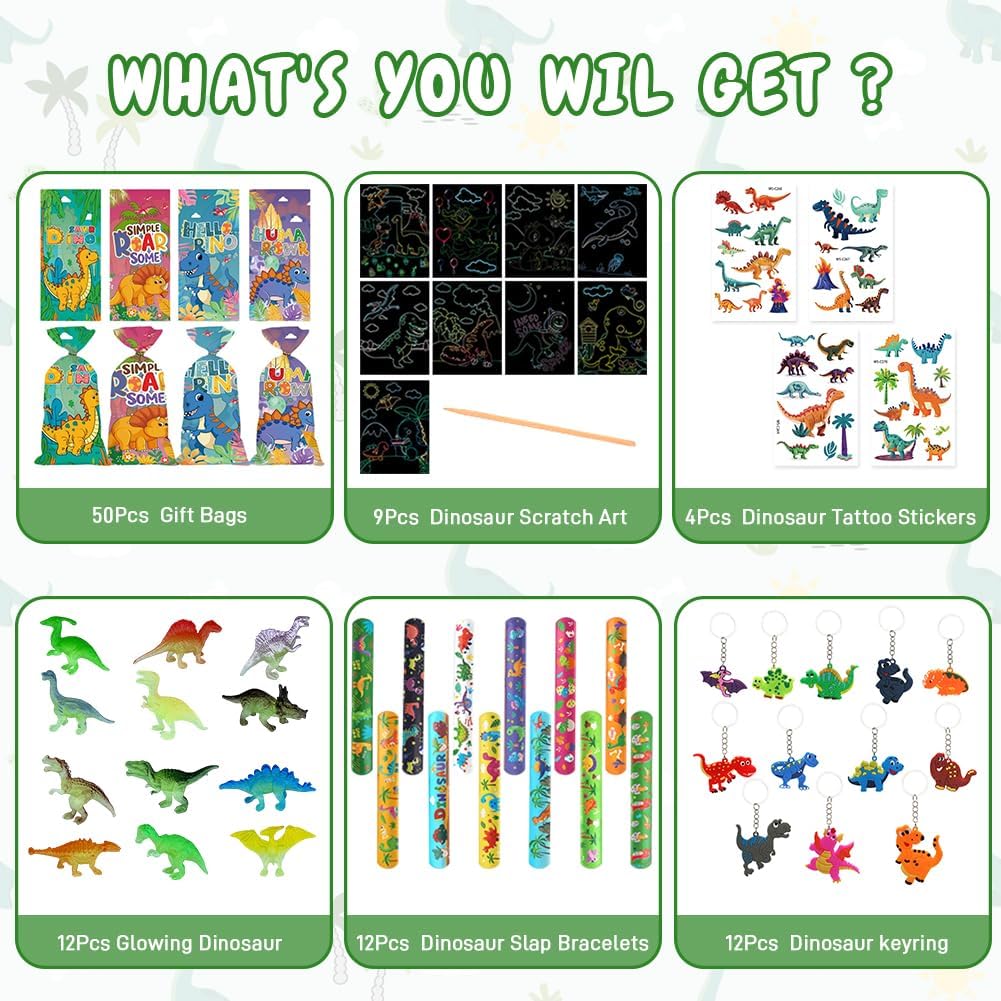 🦖【Kit Festa Dinosauri Regalo】Il set di giocattoli con dinosauri comprende 12 portachiavi a forma di dinosauro, 12 braccialetti a forma di schiaffo a forma di dinosauro, 12 Dinosauri Luminosi, 50 sacchetti regalo, 10 scratch art bambini, 4 tatuaggi temporanei. È un ottimo regalo a sorpresa per bambini di 3-12 anni. 👍【Materiale di Alta Qualità】Le kit festa dinosauri regalo sono realizzate in materiali di pvc, carta e pp di alta qualità con bellissimi motivi, stampa chiara, inodore, bordi lisci senza creste, perfetti per i bambini. 🦕【Diversi Modelli e Design】I portachiavi possono essere usati dai bambini per la decorazione quotidiana, come zaini e astucci per la scuola. Questi dinosauri in miniatura luminosi sono realistici e diversi tipi di dinosauri sono presentati in varie posture, facendo sentire i bambini come se fossero nel vero mondo dei dinosauri. 🎁【Regali per Feste a Sorpresa】È un regalo perfetto per i bambini che amano i dinosauri. I bambini possono giocare con i genitori o con gli amici. Incoraggiare la pazienza e la capacità di osservazione dei bambini. Perfetto per feste di compleanno, feste per bambini, premi per feste per bambini, premi di carnevale, regali di Halloween, regali di Natale e altro ancora. 🥳【Soddisfazione Completa per la Festa】Contiene un ampio assortimento di bomboniere a tema dinosauri, assicurando che ogni bambino alla festa torni a casa con un sorriso. Questi bomboniere economici sono perfetti per creare ore di divertimento e coinvolgimento, rendendo la pianificazione della tua festa un gioco da ragazzi.