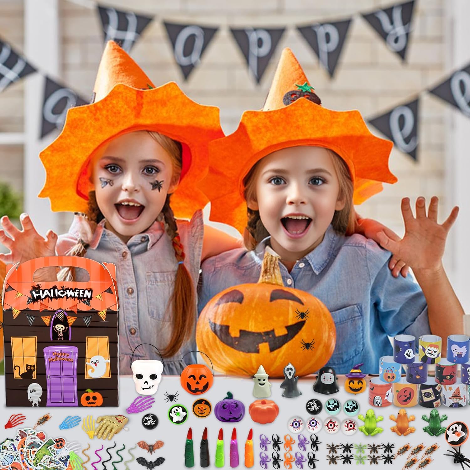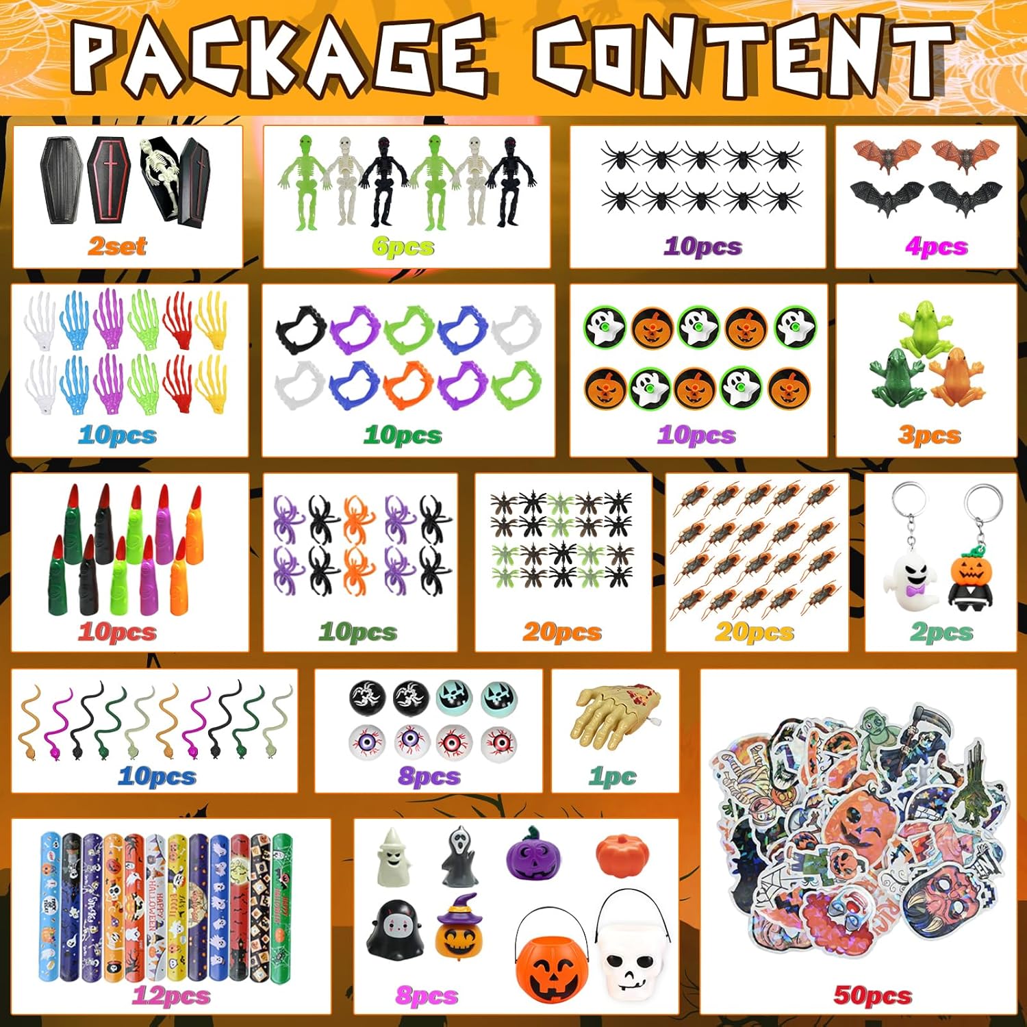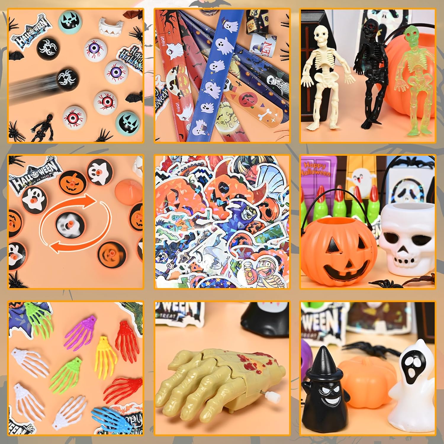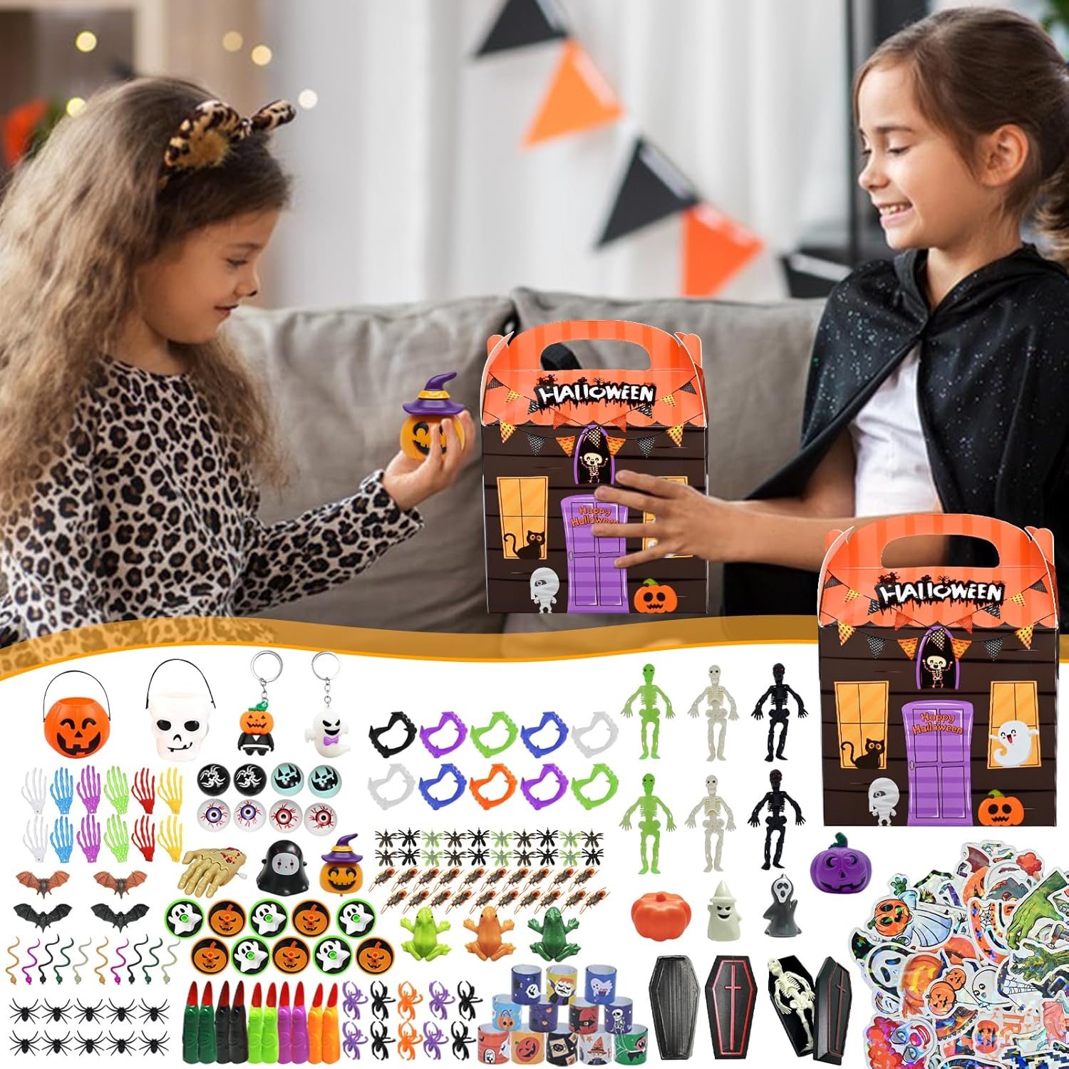 【Gadget Halloween Bambini】I nostri regali halloween per bambini contengono 208 giocattoli (16 tipi diversi) con una vasta selezione, tra cui teschi di gomma, adesivi, mani scheletriche, insetti finti, bulbi oculari finti, ragni finti e molto altro 【Alta Qualità】Realizzati con materiali di alta qualità e meticolosamente realizzati, presentano bordi lisci e senza sbavature, colori vivaci e resistenza, garantendo un gioco sicuro e divertente 【Giochi Halloween Bambini】I nostri regalini halloween bambini sono progettati e assemblati con cura, offrendo una ricca varietà di colori e opzioni. Sono adatti a tutte le età e offrono infinite ore di divertimento spettrale 【Regali Halloween】I nostri festa halloween decorazioni sono dai colori vivaci e presentano vari elementi di Halloween. Sono regali di Halloween ideali per compagni di classe, amici e bambini 【Uso】Perfetti per feste di Halloween, premi di Halloween, premi di giochi di società, feste di compleanno, carnevali, feste di Pasqua e premi in classe