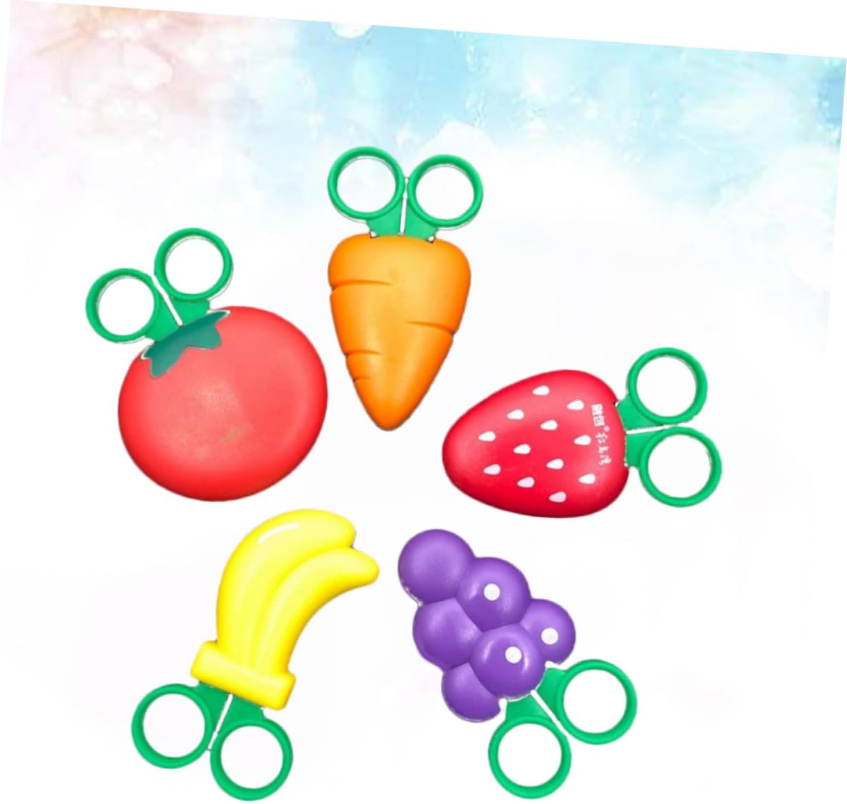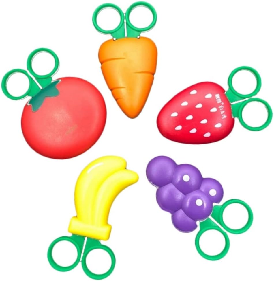 Forbici con impugnatura per bambini: progettate per le piccole per eseguire tagli lunghi/apertura con un solo tocco per una maggiore sicurezza. Forbici per addestramento prescolare: dimensioni compatte, portatili, sicure e pratiche. Forbici a punta smussata: in acciaio inossidabile, . Forbici per fragole: progettate per le piccole per eseguire tagli lunghi/tappo con apertura con un solo tocco per una maggiore sicurezza. Forbici per carote: copertina a forma di frutta, adorabile per i bambini.