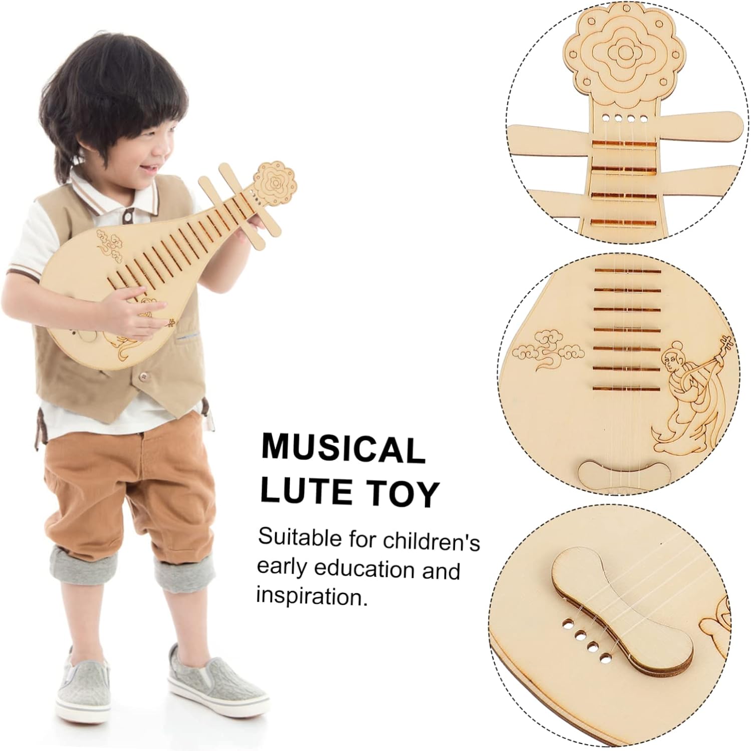 Musica per bambini - un eccellente regalo per promuovere il talento musicale e le capacità di disegno dei bambini, divertente e pratico, giocattolo con musica ad alto volume per - realizzato in legno, durevole e robusto, sicuro da usare, per strumento giocattolo per liuto per bambini - realizzato in materiale di legno, i bordi sono lisci e non danneggiano le mani del bambino, strumento a liuto giocattolo Può essere utilizzato per allenare l'udito dei bambini e coltivare l'amore per la musica dei bambini, strumenti musicali cinesi per liuto per - aiuta a sviluppare abilità pratiche, attenzione e intelligenza, suoni dei bambini per