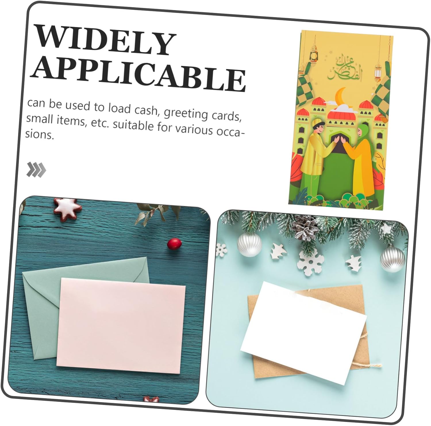 Ampia capacità: ogni busta può contenere diverse banconote, fornendo spazio sufficiente per i tuoi regali in denaro e garantendo praticità, buste per inviti eid, buste di carta Ampio spazio: ogni busta è progettata per contenere più banconote, fornendo spazio sufficiente per i tuoi regali e garantendo praticità, buste ramadan mubarak, buste eid mubarak uniche Design accattivante: con accattivanti motivi eid mubarak, queste buste aggiungono un tocco festoso alle tue celebrazioni e rendono i tuoi regali più accattivanti, buste per celebrazioni eid, buste per biglietti islamici Materiale cartaceo: realizzate in carta pratica, queste buste offrono una sensazione confortevole e sono resistenti ai danni, garantendo longevità, buste per la celebrazione dell'eid, buste per l'eid Uso funzionale: ideali per contenere contanti, biglietti d'auguri e piccoli oggetti, queste buste sono ideali per varie occasioni, offrendo funzionalità, buste per denaro eid, borsa per biglietti d'auguri