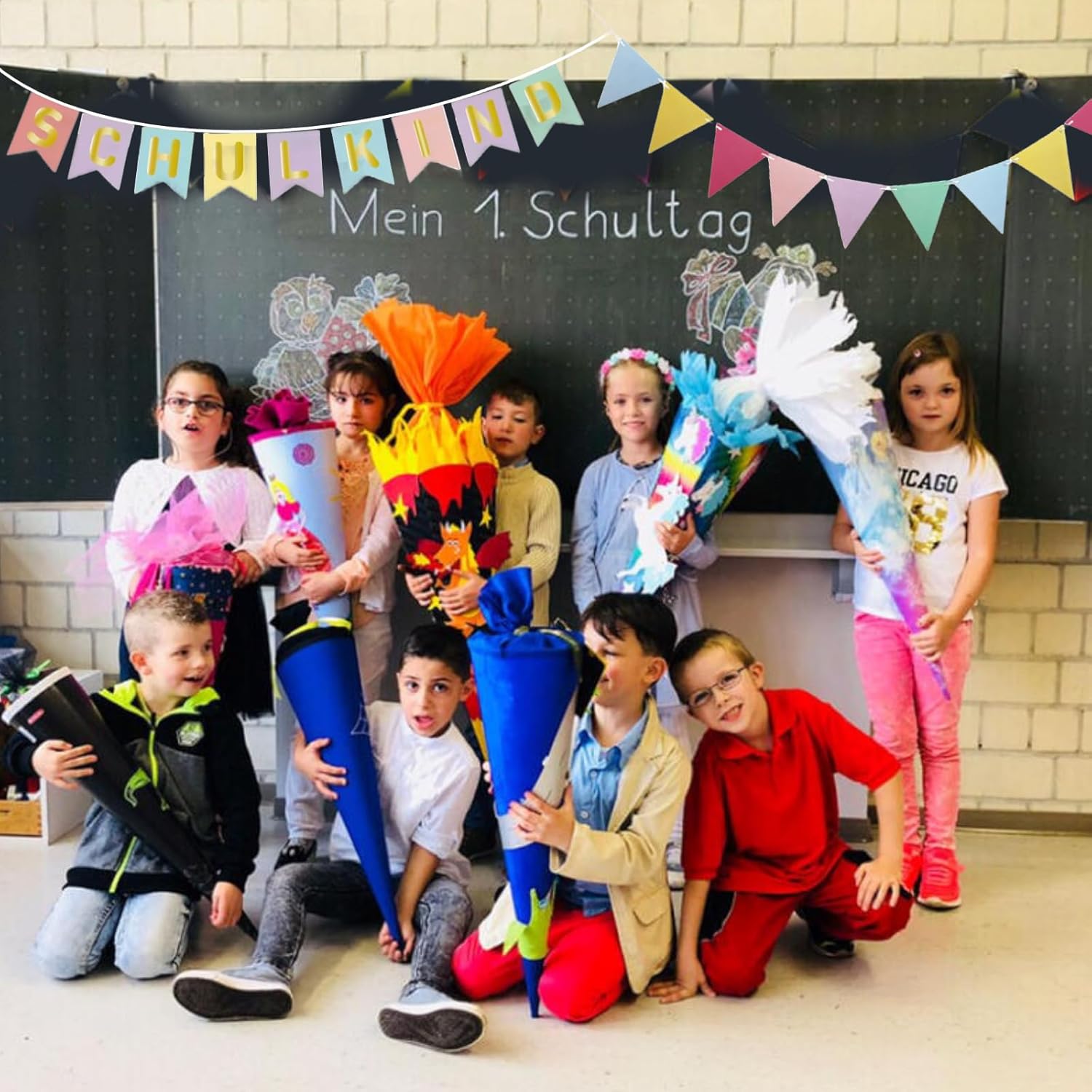 La confezione include: riceverete una ghirlanda di fiori con "SchSchulkind" e 1 festone (12 bandiere) e due nastri lunghi 5 metri. Colore del materiale: la ghirlanda di fiori è realizzata in carta di alta qualità, pastello, con lettere chiare e può essere riutilizzata Specifiche e dimensioni: la ghirlanda con lettere "SchSchulkind" di circa 13 x 18 cm, ogni pezzo di bandiere 14,5 cm x 16 cm Facile da installare: le carte della ghirlanda hanno fori preforati che vengono infilati attraverso i fori con filo di seta, sono disposti con lettere e sacchetti di zucchero (la distanza può essere controllata da soli) e quindi possono essere facilmente appese a pareti, tavoli o porte. Crea atmosfera: le ghirlande di fiori per scolari possono essere utilizzate come regalo a sorpresa per ragazzi e ragazze quando inizia la scuola, rendendole perfette per la decorazione di feste di apertura, cerimonie di apertura, insegnamenti scolastici e decorazioni per aule, stelle filanti. Crea un'atmosfera allegra e allettante.