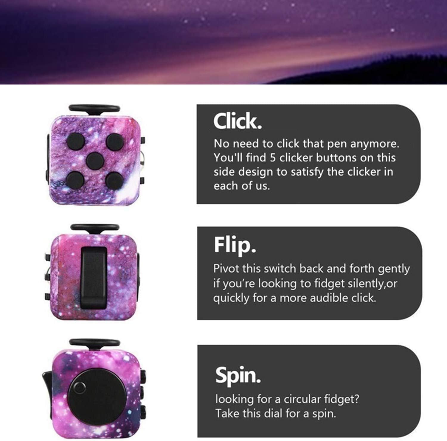 Aiuto per la concentrazione: un giocattolo avvincente di alta qualità che ti aiuta a concentrarti e concentrarti con stile al lavoro, in classe e a casa. In questo modo è molto più facile rilassarsi e concentrarsi su qualcos'altro Design intelligente: 6 pagine uniche per le persone che non riescono a tenere ferme le dita, che tu sia un clicker, uno sfarfallio, uno scooter o uno spinner. Ecco perché è incluso questo fantastico giocattolo da scrivania a cubo antistress CONFORTEVOLE: piccolo, leggero e facile da trasportare ovunque: in ufficio, in viaggio, a lezione o a una riunione. Inserisci la chiave Fidget in tasca, nella borsa o nel portafoglio. QUALITÀ ECCELLENTE: il nostro speciale cubo Galaxy Fidget non è il più economico, ma il più sorprendente. Realizzato in silicone extra resistente senza plastica, motivo mimetico. Tutti dovrebbero meritarsi di averne uno, ed è anche un regalo meraviglioso per i tuoi amici o familiari. Soddisfazione garantita al 100%: Yetech utilizza solo materiali di altissima qualità. I nostri prodotti sono testati in fabbrica e siamo certi che li adorerai assolutamente. Se hai domande, non esitare a contattarci, ti risponderemo entro 24 ore.