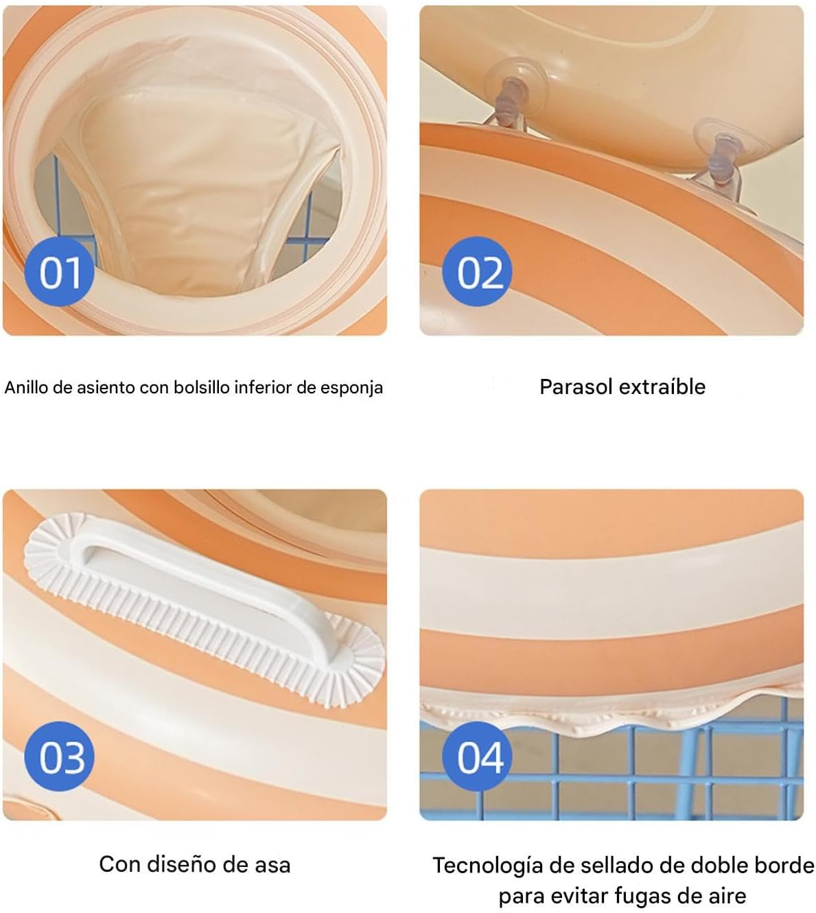 Galleggiante fantasioso: il design cattura l'attenzione dei bambini e incoraggia la loro creatività, migliorando la loro esperienza in acqua grazie a toni vivaci e uno stile retrò stimolante Copertura UV resistente: include parasole protettivo che riduce l'intensità del calore e della luce solare, migliorando significativamente il comfort del bambino e offrendo una protezione affidabile contro i raggi UV nocivi Uso flessibile: favorisce l'interazione familiare attraverso attività adattive in acqua, ideale per uso ricreativo in spazi come piscine domestiche, aree spiaggia e aree parchi acquatici Galleggiamento sicuro: il sedile ergonomico a forma di anello assicura una distribuzione equilibrata della pressione, ottimizzando la stabilità e riducendo il rischio di ribaltamento per una maggiore tranquillità. Salvataggio efficiente: gonfiaggio/sgonfiaggio rapido combinato con formato pieghevole, ottimizza lo spazio e facilita il trasporto o lo stoccaggio ovunque