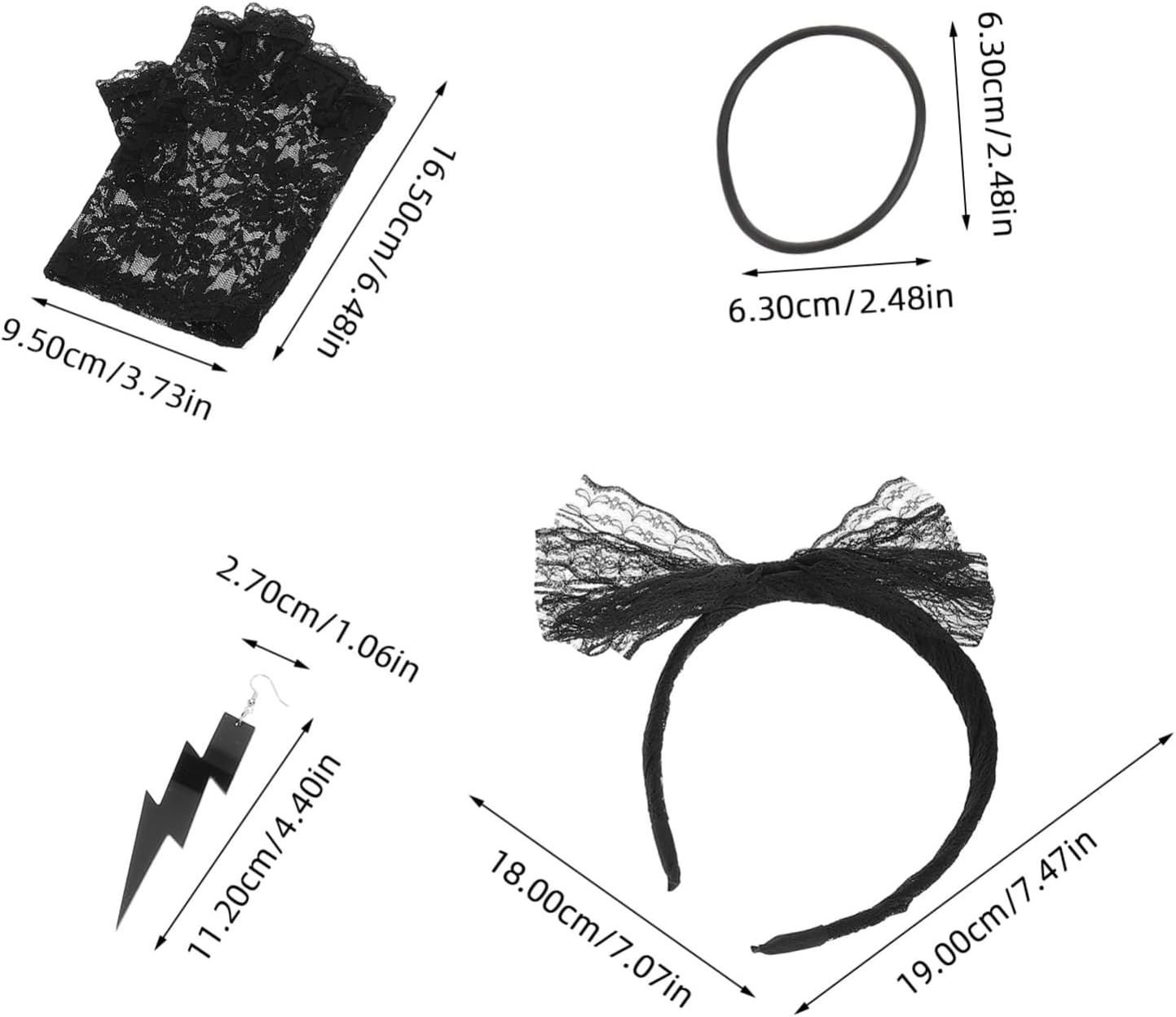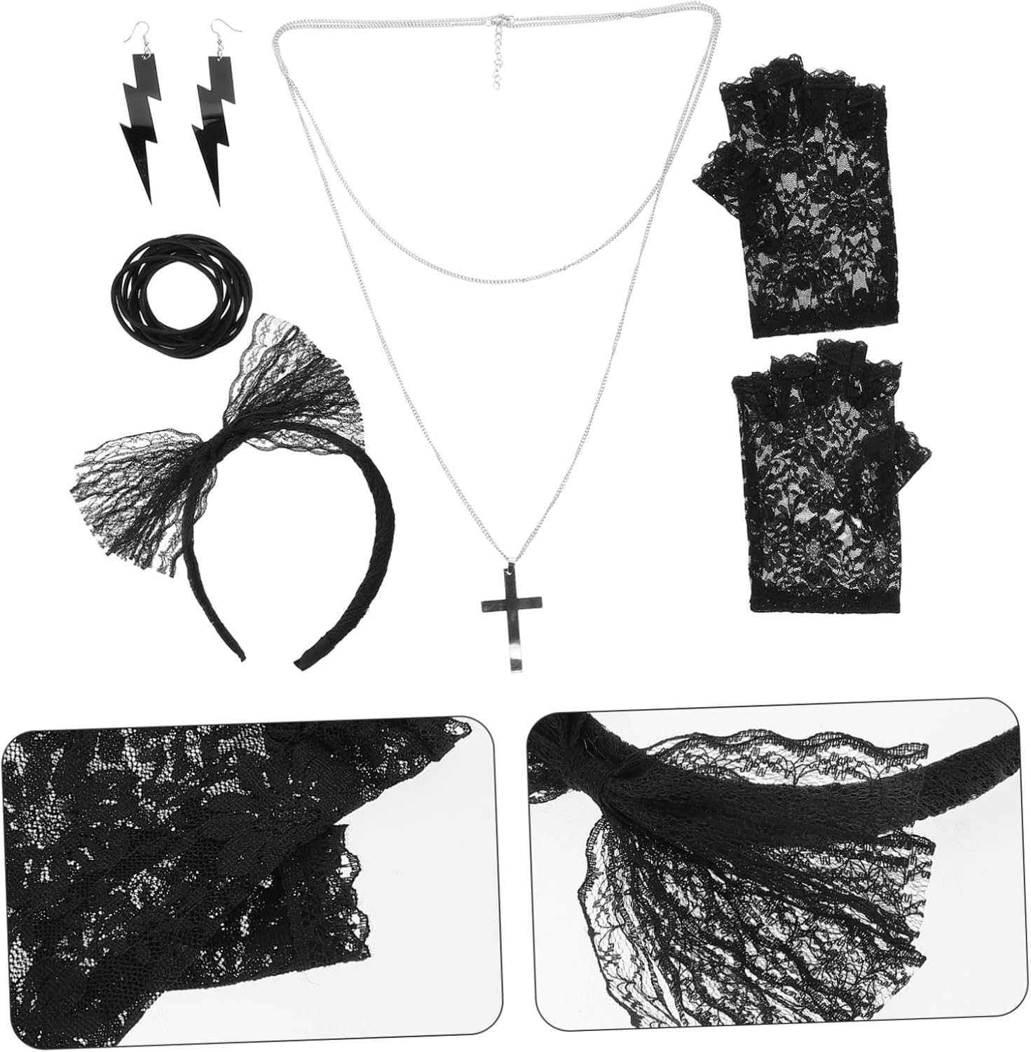 Il pacchetto include 10 braccialetti, 1 fascia per , 1 paio di orecchini, 1 collana, 1 paio di guanti Caratteristiche -Collana con croce: un simbolo alla moda che riflette il tuo gusto personale e aggiunge un tocco di al tuo outfit, accessori per costumi da festa -(Braccialetti) Dimensioni: 6,30X6,30X0,30 cm / 2,48X2,48X0,12 pollici fascia e guanti -(fascia per ) Dimensioni: 19,00X18,00X10,00 cm/7,47X7,07X3,93 pollici ornamenti per costumi di Halloween -Colore: Collana con croce delicata nera -Guanti a rete neri: design classico che mette in mostra la tua personalità unica e il tuo senso della moda, facendoti distinguere tra la . Guanti in pizzo nero -(collana) Dimensioni: 49,00X3,00X0,30 cm/19,26X1,18X0,12 pollici collana cristiana -Materiale: decorazioni per costumi di Halloween in plastica + pizzo + lega di zinco -(orecchini) Dimensioni: 11,20X2,70X0,20 cm/4,40X1,06X0,08 pollici guanti neri - (guanti) Dimensioni: 16,50X9,50X0,20 cm / 6,48X3,73X0,08 pollici guanti in pizzo -Stile retrò: le tendenze della moda degli anni '80 e diventa il centro dell'attenzione a qualsiasi festa con questo elegante set di braccialetti per Descrizione della merce spaventosi abbellimenti per costumi per eventi a tema, questo set combina il fascino vintage con un tocco moderno, assicurandoti di distinguerti mentre abbracci l'occasione. Fasce in pizzo per donna Migliora il tuo look da festa con questo set di accessori di ispirazione retrò, composto da fascia, eleganti guanti a rete nera e una sorprendente collana a croce