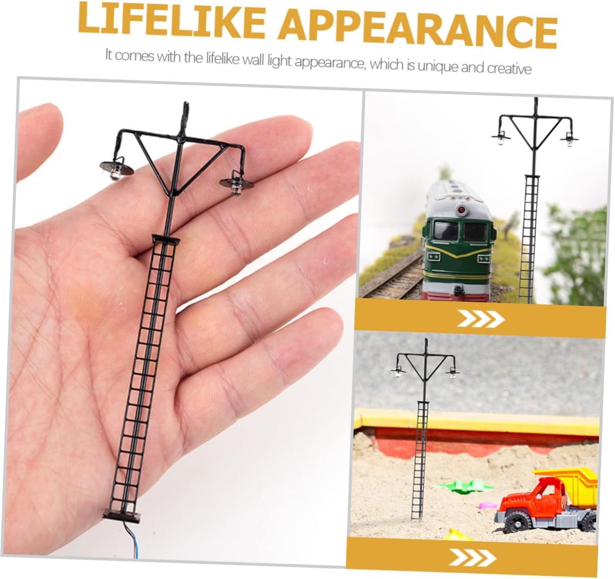 Lampada da treno: realizzata in modo splendido e realistica, con un alto grado riproduzione realistica, impossibile da mettere giù, modello lampioni stradali Decorazione per mini case: presenta dimensioni compatte per decorare tavolo sabbia, aggiungi calore e atmosfera vita quotidiana, luce ferroviaria in miniatura Mini modelli ferroviarie: superficie liscia, aspetto semplice e vivido, decorativo, un delicato per la scena del tavolo sabbia, per modellismo ferroviario Luminosi micro-paesaggio: modello lampada da in miniatura è realizzato con materiale sicuro e affidabile, pratico da usare, materiale base in miniatura Lampada da treno in miniatura - utilizzo , buona decorazione, in particolare mini casa, decorazione del paesaggio del tavolo sabbia, un'illuminazione per modellini ferrovie