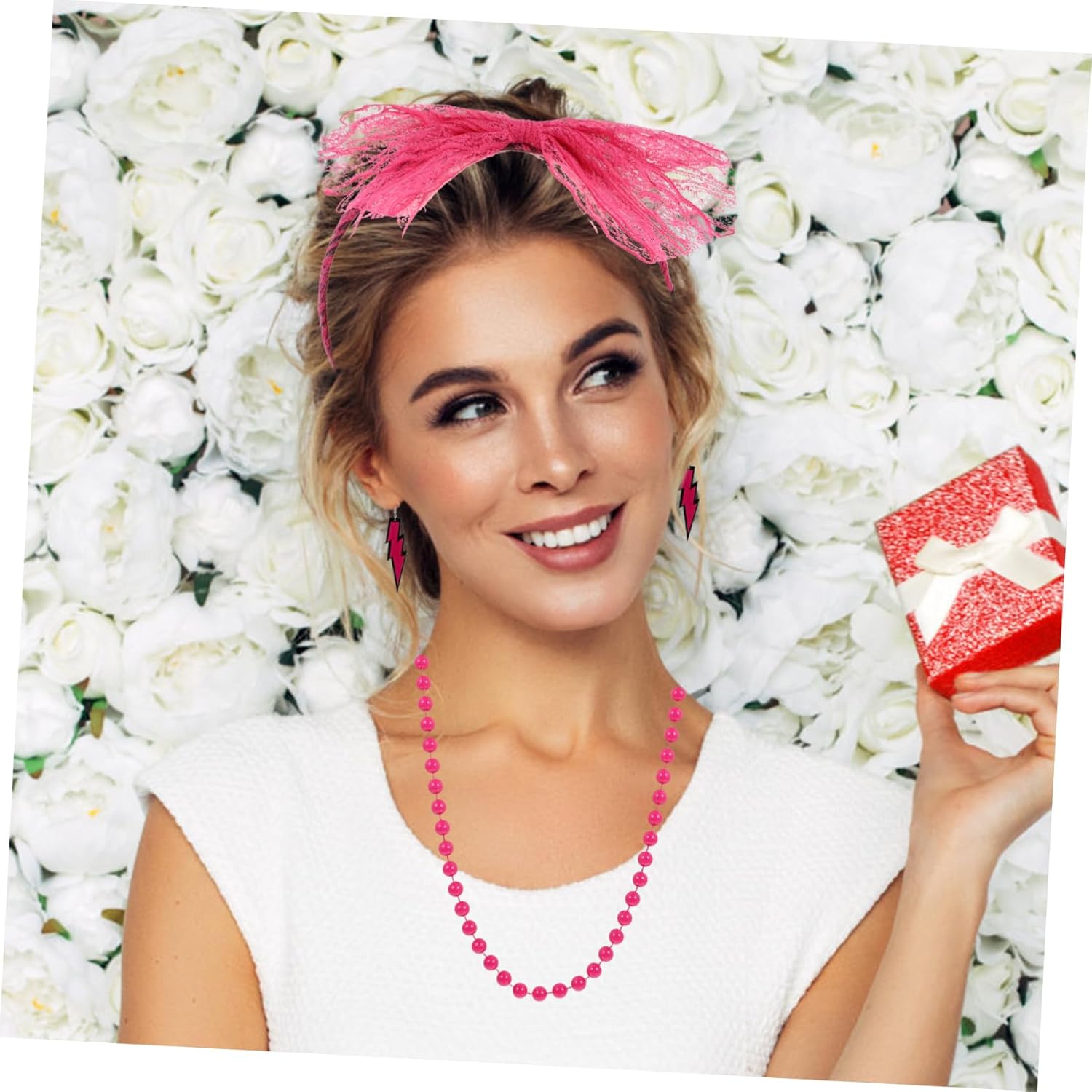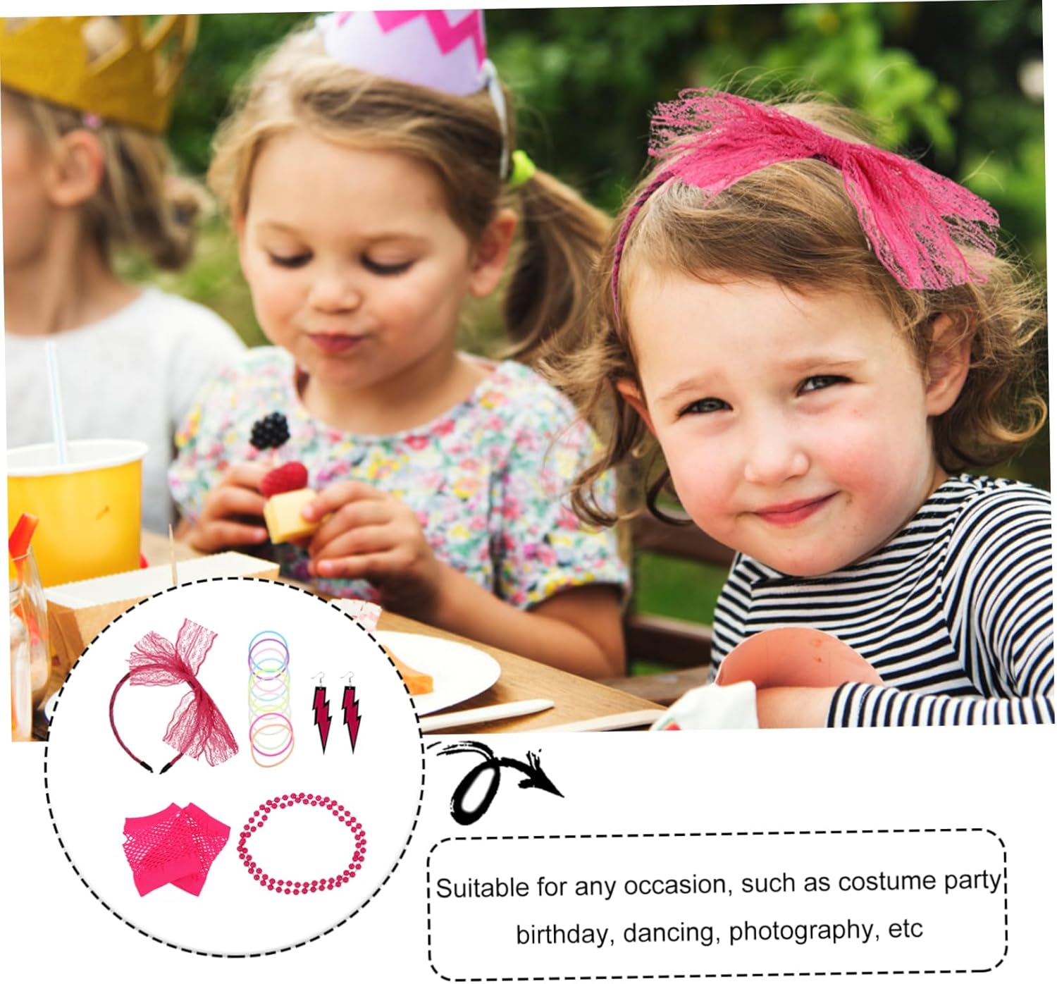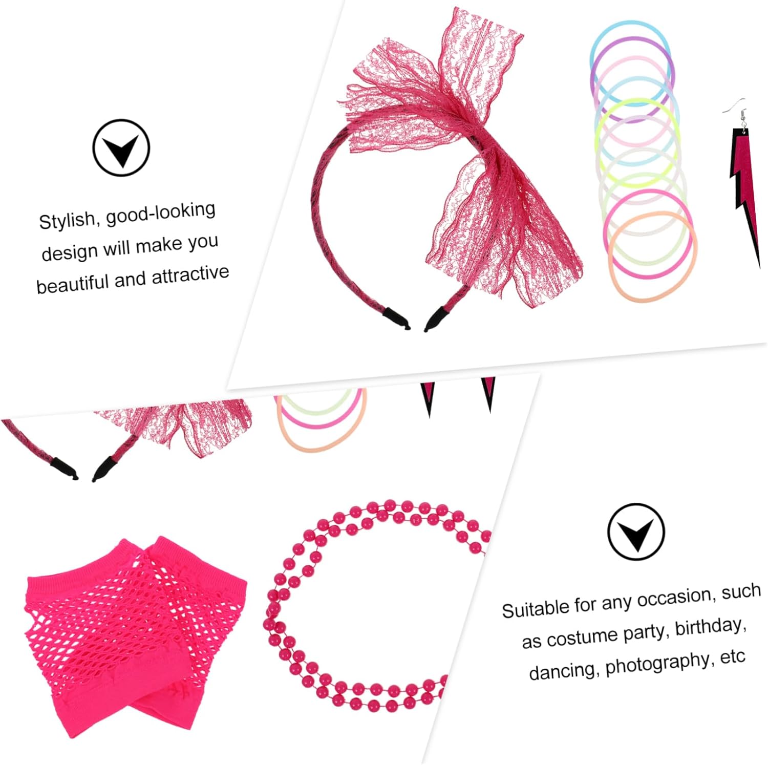 dei pacchetti 2 paia di orecchini 20 braccialetti 2 fasce per 2 paia di guanti 2 collane caratteristiche -dimensioni della confezione: circa 20,00x16,00x5,00 cm/7,87x6,30x1 donne. -materiale: stoffa per costumi da donna : ottima decorazione per scattare selfie e foto con famiglie e amici, oggetti di scena per cosplay di feste neon. -questi accessori per costumi sono adatti per le feste, puoi giocare quanto vuoi dopo averli indossati pom. -questi costumi da festa possono creare un aspetto elegante, birichino ma innocente e farti sembrare più misterioso con gli orecchini rosa da festa. - L'aspetto elegante e di bell'aspetto ti renderà una miniatura più e attraente. - realizzato in materiale leggero e dal design alla moda, per decorazioni in costume da festa femminile. informazioni sulla merce fascia per in pizzo meravigliosi accessori per costumi per donne e ragazze per feste a tema carnevale, ballo in maschera, balli in maschera ecc. moda moda femminile vuoi degli accessori per costumi unici per la tua festa a tema? allora il nostro prodotto ben fatto sarà un'ottima scelta! un bell'arredamento per farti risaltare nella festa