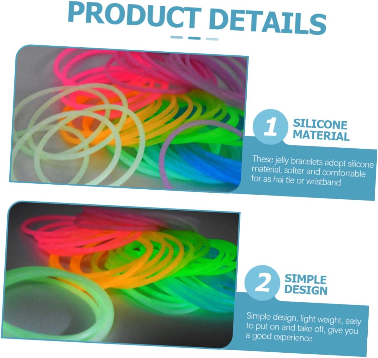 Braccialetti in gelatina di silicone: presentano un design che si illumina al buio, diversi colori ti daranno un buon piacere visivo, braccialetti colorati per eventi Braccialetti luminosi al buio: design semplice, leggero, facile da indossare e da togliere, per un'esperienza piacevole, braccialetto luminoso Braccialetti da festa: questi braccialetti di gelatina adottano materiale in silicone, più morbido e confortevole per come elastico per o braccialetto, braccialetti luminosi Braccialetti in silicone femminili: con un design semplice, comodo e flessibile, questo braccialetto è facile da indossare ed è adatto a tutti i braccialetti luminosi Braccialetti luminosi in gelatina per : con un design che si illumina al buio, questo braccialetto può essere utilizzato come giocattolo per le feste dei o come elastici per , braccialetti luminosi