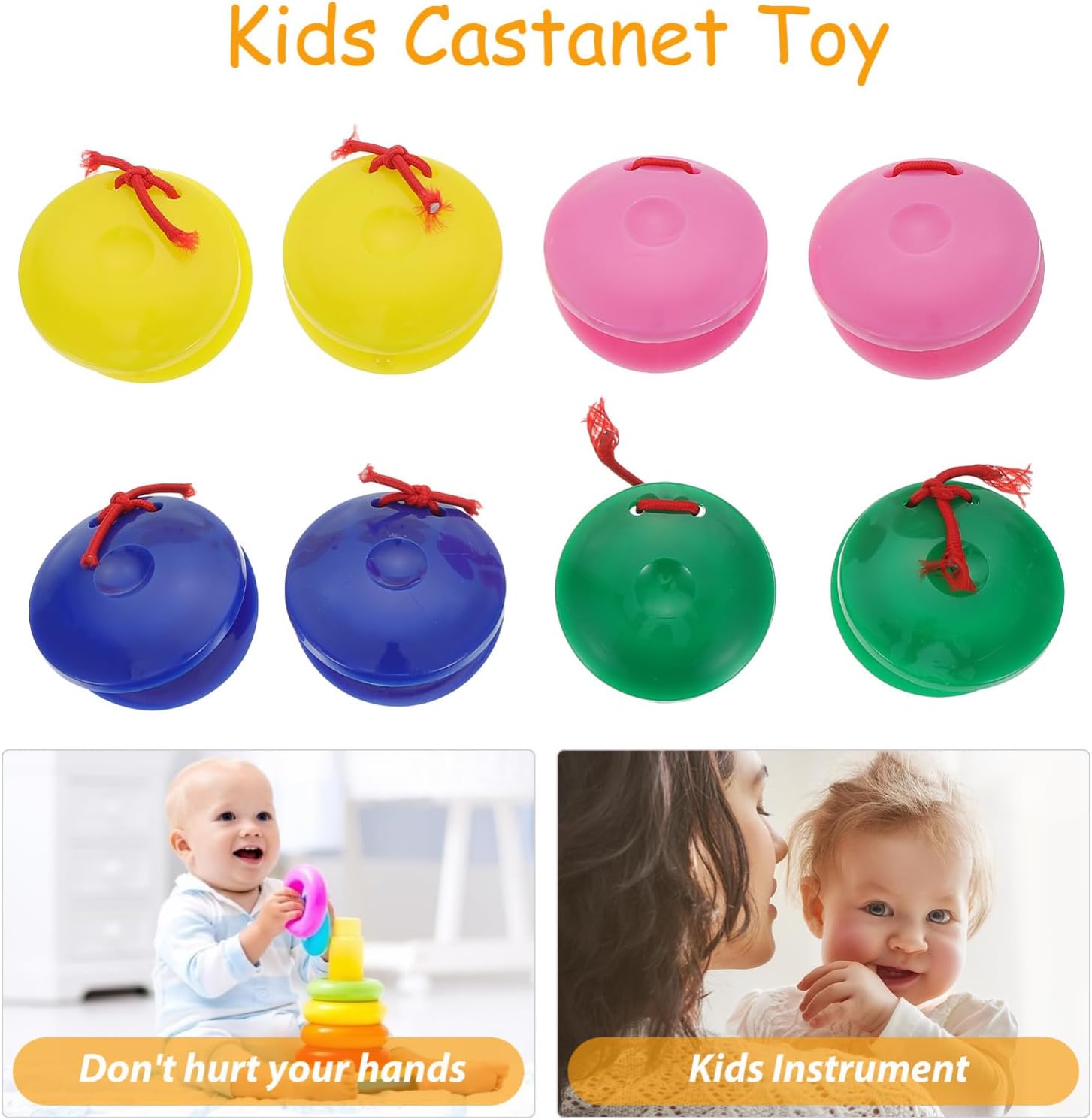 Strumenti per : suoni semplici e nitidi possono rendere più facile per i suonare le nacchere con le dita per Strumenti per : i materiali plastici e la lavorazione accurata rendono questi giocattoli a percussione più resistenti e sicuri, giocattolo ritmico per nacchere da dito Strumenti musicali per : progettati con colori vivaci, questi giocattoli a percussione sono attraenti ed educativi per i , strumenti musicali per Strumenti musicali per : realizzati con materiali plastici sicuri, giocattolo a forma di nacchere è durevole per l'uso, strumento musicale per Nacchere per : stimolano lo sviluppo sensoriale del , sviluppando anche suo senso della , nacchere per