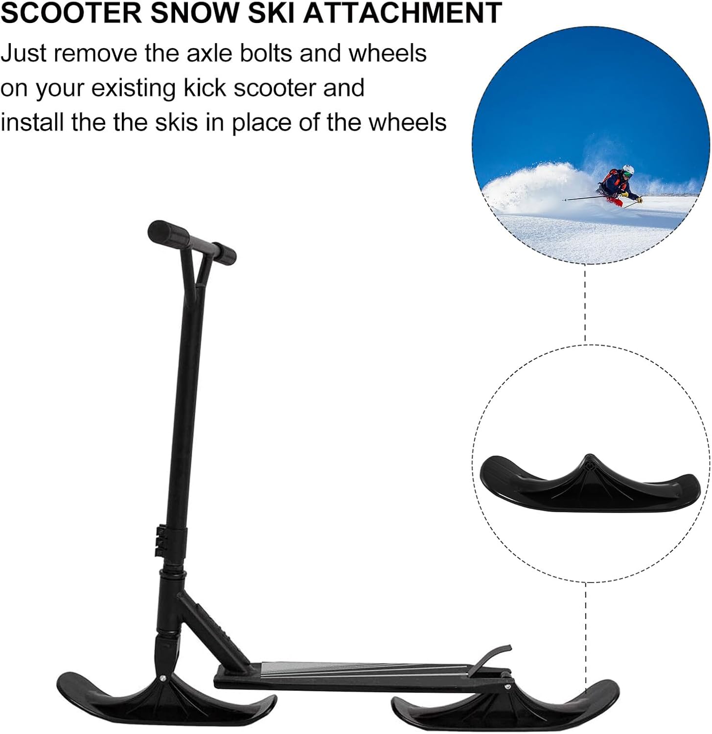 Tavole da slittino per bambini: attacco per sci e ruote sono facilmente sostituibili con poche viti e attrezzi, attacco per monopattino da sci, accessori per monopattino per la neve: gli snowboard sono realizzati in plastica resistente alle intemperie e durevole, così i vostri piccoli potranno fare del loro meglio. - parti per skateboard Accessori per slitte da neve - realizzati in materiale durevole e resistente all'usura per un uso a lungo termine, attacchi per slitte per scooter Attacco per sci per scooter - è stampato ad iniezione da stampi in plastica PE, quindi durevole e resistente alle basse temperature fino a meno gradi, sostituto per slitte da snowboard Attacco per scooter per slitte da neve - sci e freno da neve integrato per tutti gli scooter standard, sci da neve per scooter
