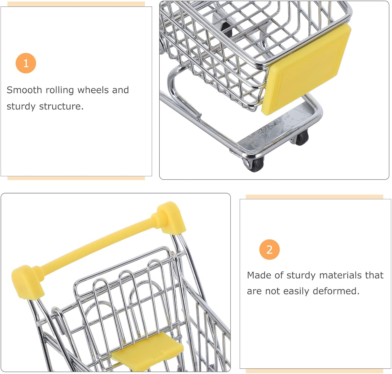 Mobilità flessibile e fluida: dotato di quattro ruote lisce, questo carrello della spesa con ruote scivola senza sforzo su varie superfici, ideale per scenari di supermercato e drogheria, mini carrello della spesa per giochi di ruolo, mini carrello della spesa Dettagli intuitivi: caratteristiche come la maniglia di facile presa e il mini sedile pieghevole rendono questo piccolo carrello della spesa pratico per le mani dei più piccoli e aumentano il divertimento e la praticità del gioco. mini modello giocattolo, carrello della spesa Materiali sicuri: questo mini carrello della spesa è realizzato in robusto ferro e plastica ed è progettato per durare. Garantisce sicurezza, mini carrello della spesa, carrello della spesa Soluzione versatile per riporre oggetti: non solo un carrello della spesa, ma un carrello della spesa in miniatura, ideale per organizzare articoli di cancelleria, trucchi o giocare con miniature sulla scrivania, mini carrello della spesa, carrello della spesa in metallo Caratteristiche funzionali: Migliora la funzionalità di questo piccolo carrello della spesa, adattalo a bambole, peluche e varie esigenze di stoccaggio, carrello della spesa per, carrello della spesa in miniatura