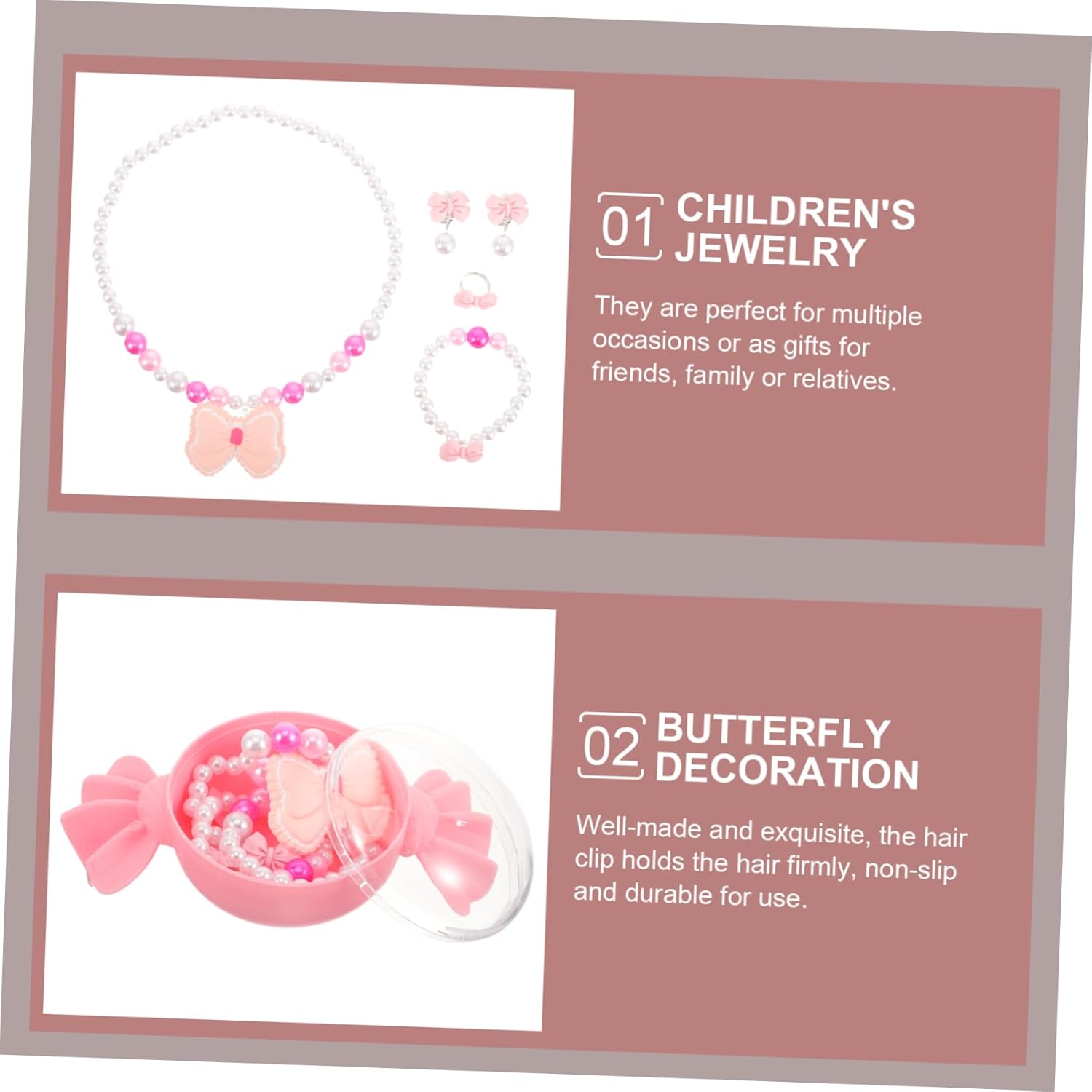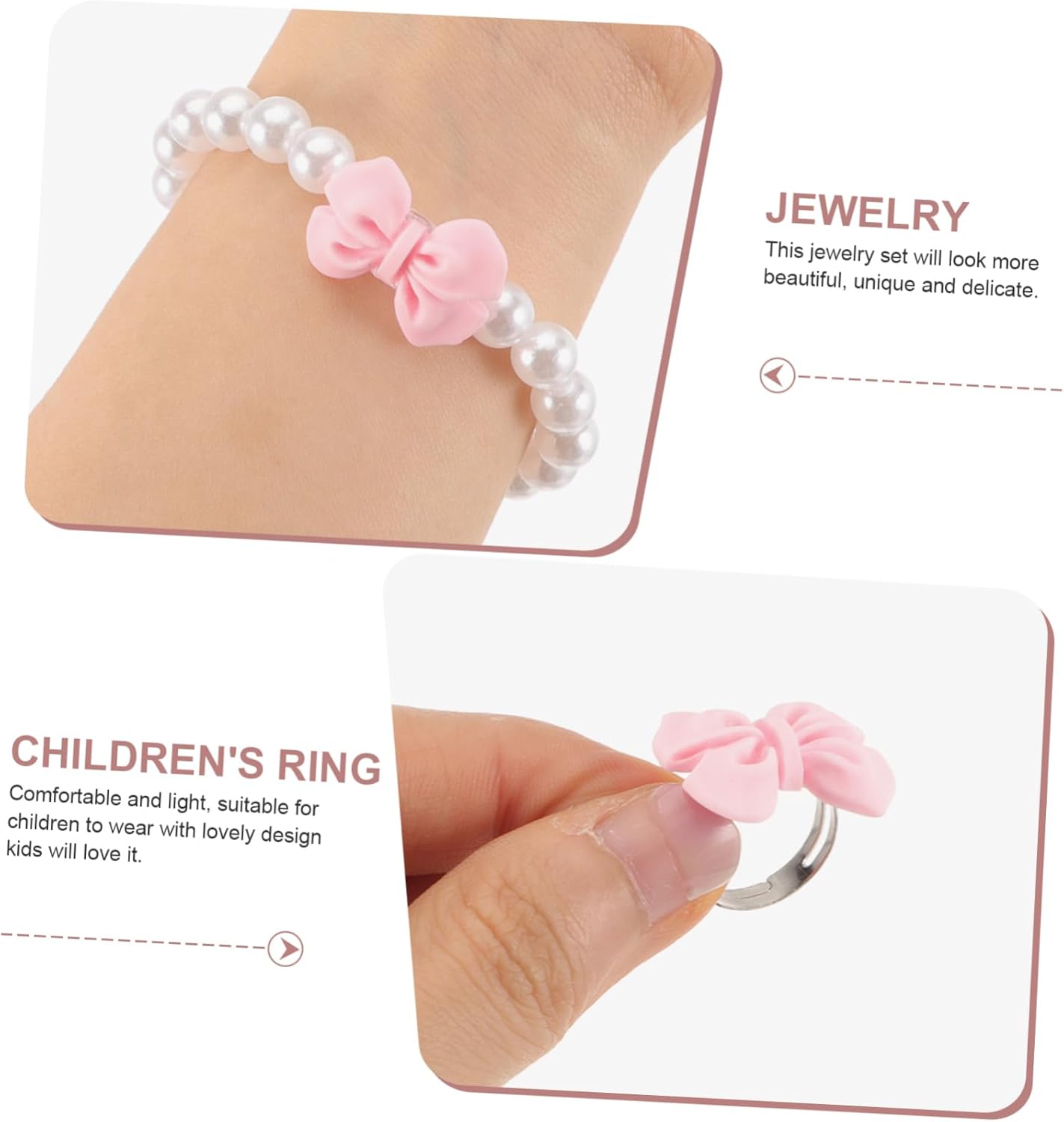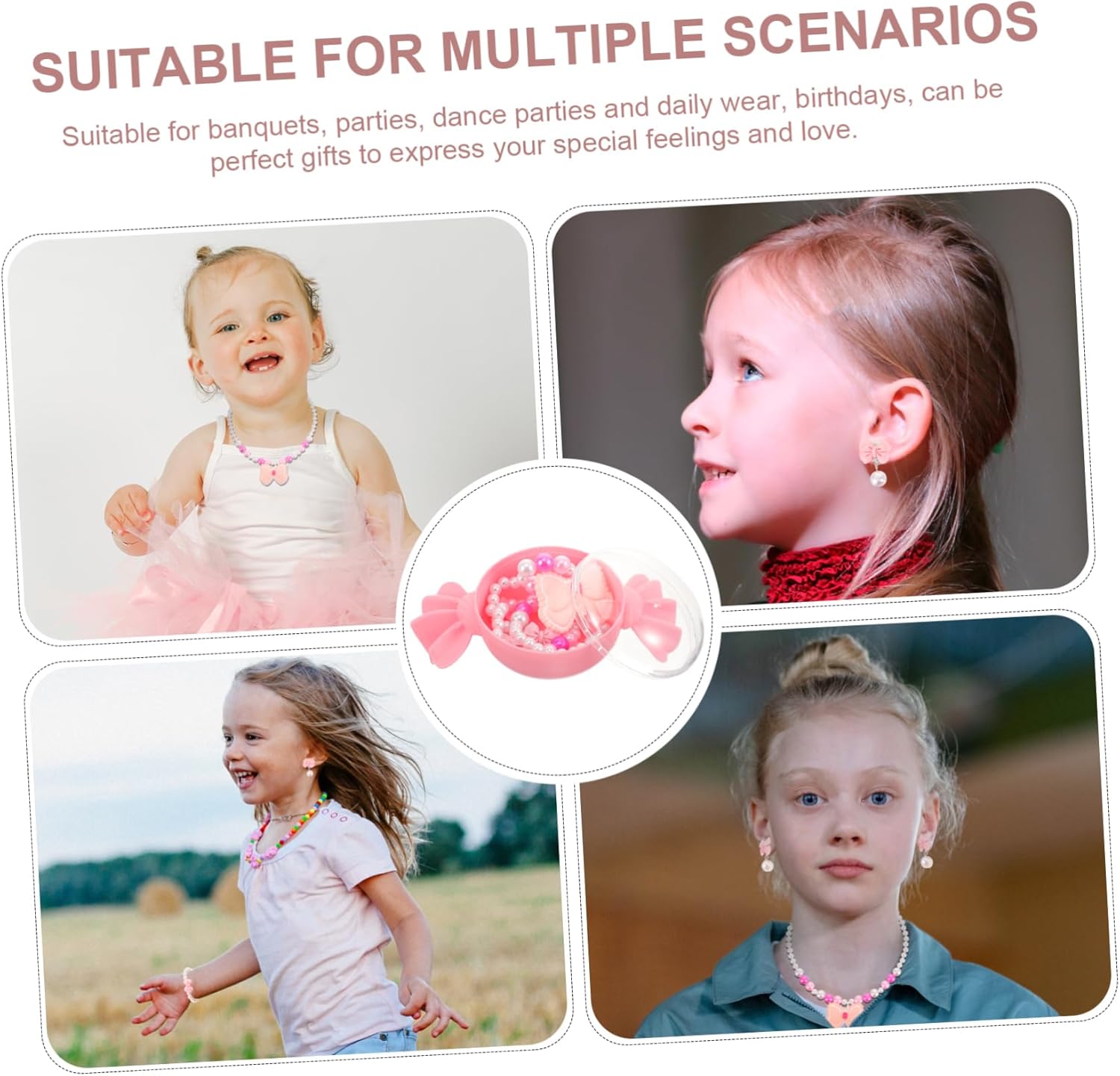 dei pacchetti 1 x Collana 1 x Bracciale 1 x Paio di Orecchini 1 Caratteristiche -Dimensioni: 2,50X2,00X1,80 cm/0,98X0,79X0,71 pollici, giocattoli-gioielli per ragazze -Dimensioni: 17,00X9,00X5,00 cm/6,68X3,54X1,97 pollici gioielli per bambine -Materiale: gioielli per bambini in plastica e resina -Colore: gioielli per bambini rosa -Dimensioni: 16,00X16,00X4,00cm/6,29X6,29X1,57 pollici gioiello per ragazza -Dimensioni: 6,00X6,00X1,80 cm/2,36X2,36X0,71 pollici gioielli per bambini -Dimensioni: 3,00X2,50X1,00 cm/1,18X0,98X0,39 pollici gioielli da vestire per ragazze - Bellissimi accessori per per bambine, bambini piccoli da indossare tutti i giorni, e la splendida e delicata collana, il braccialetto, l'anello e gli orecchini saranno perfetti come gioielli per bambine. - Puoi scegliere diversi gioielli per decorare i tuoi bambini, la molletta per è adatta anche per decorare i gioielli dei bambini. - Manterrà l'acconciatura per tutto il e rimarrà nei sottili del bambino senza cadere con i gioielli per bambini. - Grazie al design unico e all'aspetto impeccabile, è facile abbinare i gioielli da gioco per ragazze all'outfit quotidiano delle tue bambine. - Realizzato principalmente con materiali di eccellente durata, può essere utilizzato a lungo come gioiello per bambine. Informazioni sulle merci Gioielli per bambine realizzati con ottimi materiali, belli e adorabili. Aggiungeranno più punti all'abbigliamento della tua bambina e la renderanno più adorabile e attraente. Gioielli da gioco per bambine. Stai cercando un set di gioielli giocattolo per bambine? Questo prodotto è perfetto per le tue bambine.