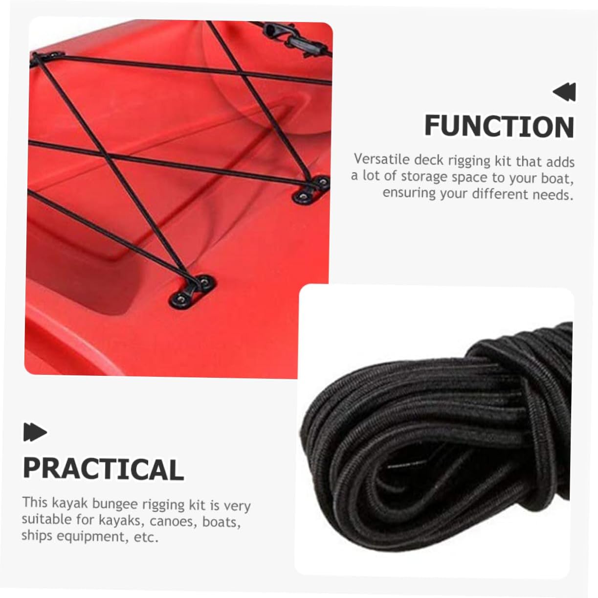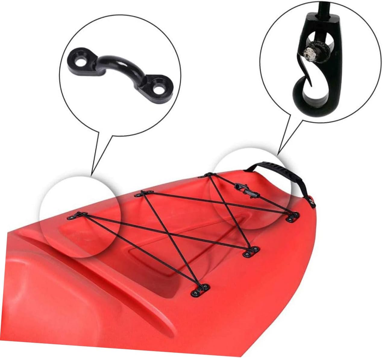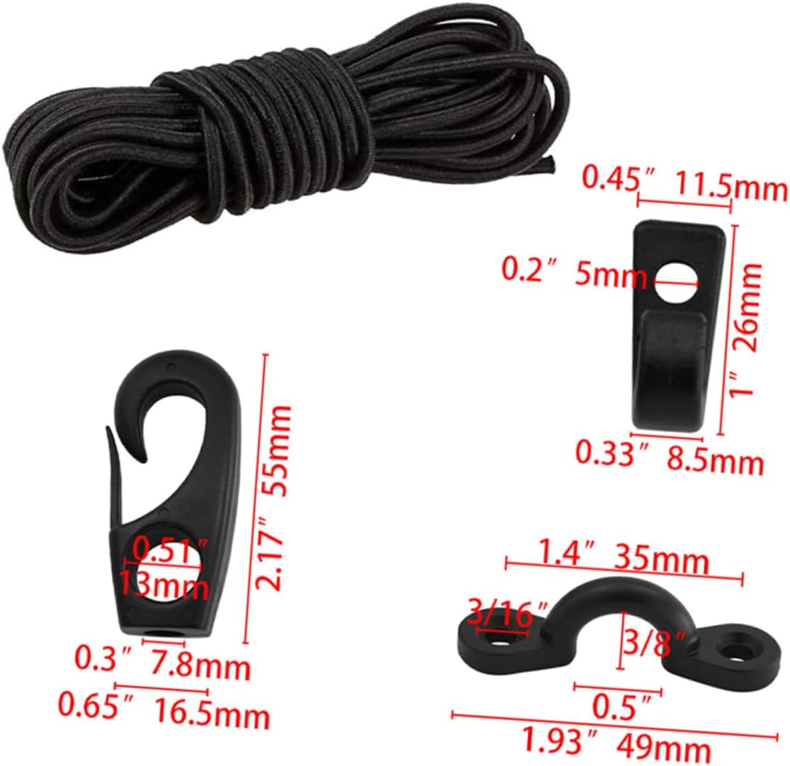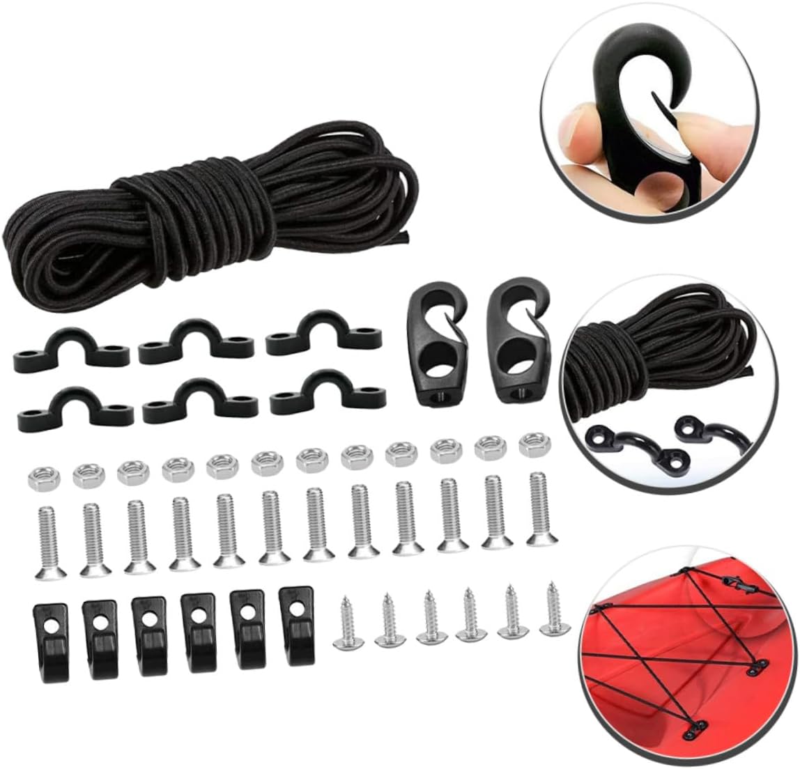 Cinghie elastiche con ganci: hanno un design semplice, ma sono molto pratiche da usare, offrendoti delle lunghe corde elastiche piatte Corda elastica per kayak: funzionale e pratica, il kit per il ponte del kayak può fissare il tuo accessorio sui tuoi kayak o sulla tua , corde elastiche Elastici con ganci: leggeri e facili da trasportare, dimensioni che li rendono facili da portare con te, kit di attrezzatura per kayak Cinghie di fissaggio con ganci: realizzate con materiali affidabili e robusti, con eccellente durata e praticità, corda per con clip Parti per kayak oceanico: si adattano alla prua, alla poppa o alla parte anteriore del kayak, sono adatte per kayak, barche, canoe, attrezzatura da pesca, corda elastica con gancio