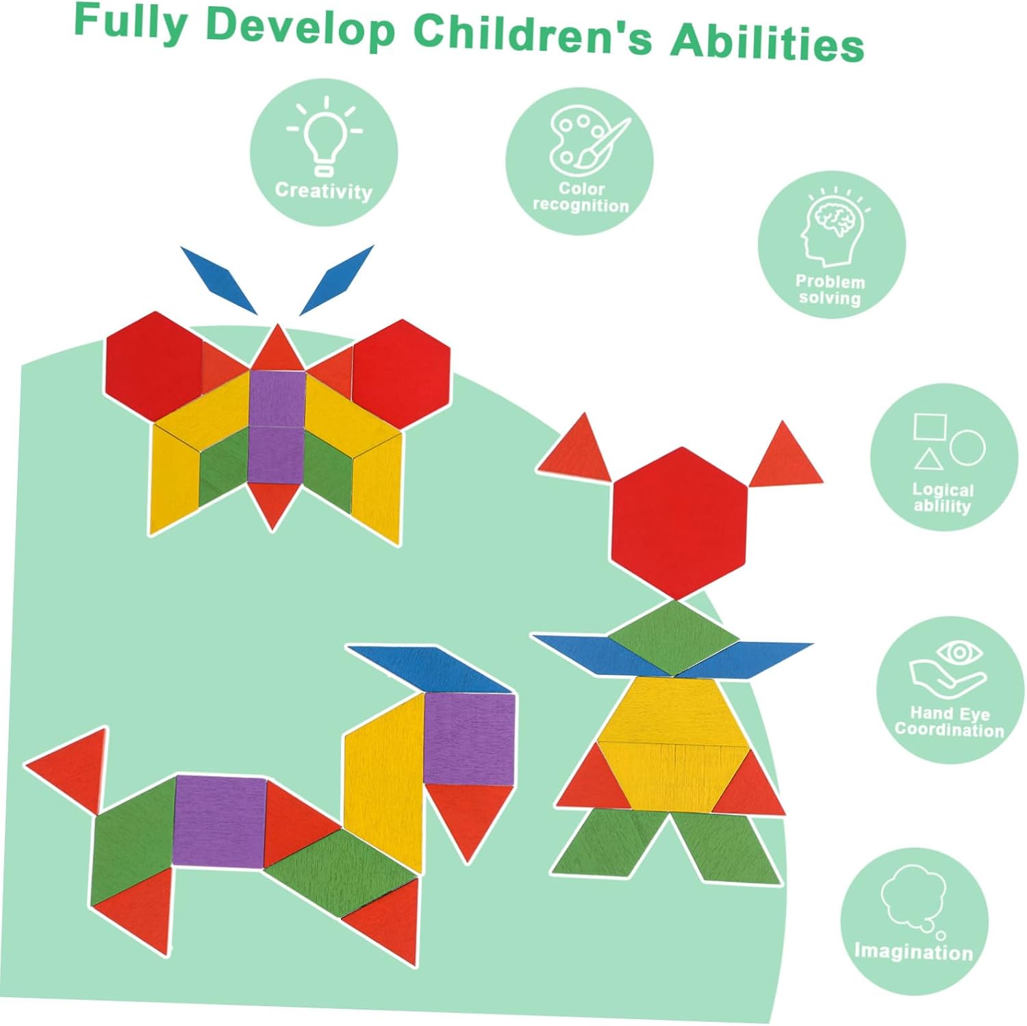 Giocattoli educativi: quello con i pezzi di legno può aiutare i bambini a sviluppare la coordinazione occhio-mano e stimolare la loro immaginazione, puzzle di forme geometriche, blocchi di legno Colori vivaci: questi blocchi presentano colori vivaci che attireranno l'attenzione di tuo figlio e stimoleranno la sua creatività. blocchi con motivi in legno, gioco di abbinamento di forme geometriche Superficie liscia: la superficie liscia dei blocchi lo rende facile da maneggiare e manipolare, senza sbavature e bordi ruvidi, blocchi di legno per forme geometriche Varie forme: il set di blocchi con motivi è disponibile in una varietà di forme e dimensioni, consentendo infinite combinazioni e disegni, blocchi tangram, blocco numerico Facile da riporre: i puzzle a blocchi vengono forniti con una comoda custodia in cui sono organizzati e pronti per il prossimo momento di gioco. blocchi campione per , blocchi campione per l'insegnamento