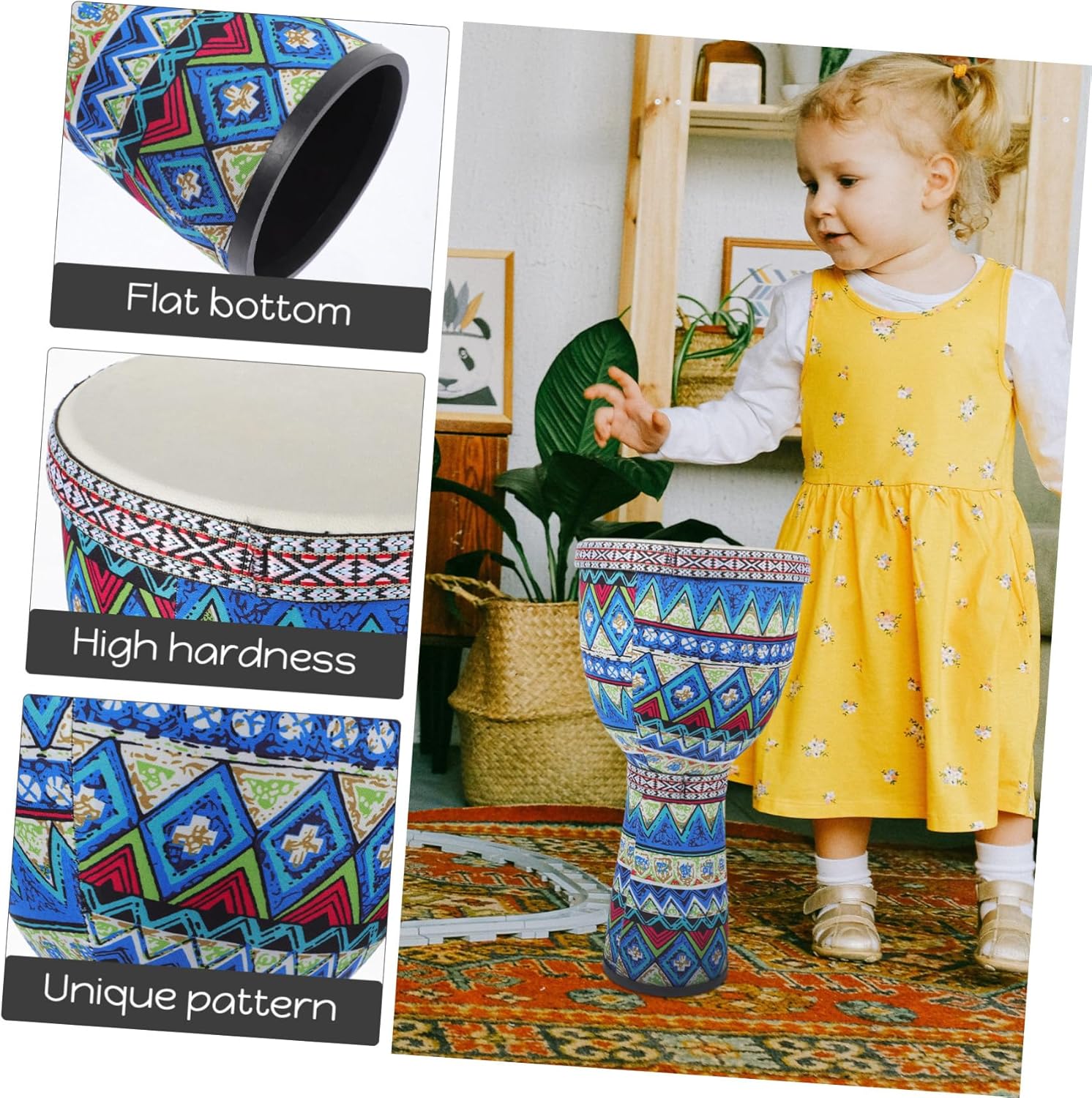 Tamburo piccolo - Realizzato in ABS resistente, questo strumento è costruito per anni di utilizzo e può essere utilizzato con maggiore sicurezza, -Strumento a percussione Design accattivante con decorazioni tradizionali: design accattivante con decorazioni tradizionali, antico giocattolo musicale per, tamburo a mano compatto per una facile conservazione e stabilità: le dimensioni compatte di questo tamburo djembe ti offrono comodità, -Tamburo a percussione, tamburo africano Mini tamburo a mano - La pregevole fattura e il buon materiale di questo tamburo djembe garantiscono un design raffinato e dettagliato, tamburo djembe stampato con trasferimento dell'acqua Tamburo djembe africano - il design accattivante presenta la tradizionale decorazione del tessuto e conferisce allo strumento un tocco di cultura, tamburo a percussione portatile
