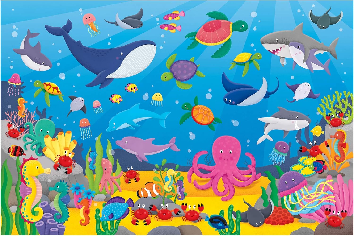 Divertente puzzle coinvolgente: Impara a contare con questo puzzle da pavimento da 30 pezzi meravigliosamente selvaggio, con adorabili animali in gruppi da 1 a 10 Include guida per guardare e trovare: usa la guida per risolvere il puzzle, prima di visualizzare il frigio colorato dei numeri sulla parete. Incoraggia lo sviluppo: i puzzle aiutano a sviluppare la concentrazione, la coordinazione occhio-mano e il riconoscimento della forma Durevole e facile da pulire: i pezzi facili da maneggiare sono realizzati con pannelli spessi di qualità che hanno una superficie facile da pulire per un divertimento duraturo Dimensioni del puzzle: 60 x 90 cm. Perfetto per le mani piccole: adatto per bambini dai 3 ai 6 anni