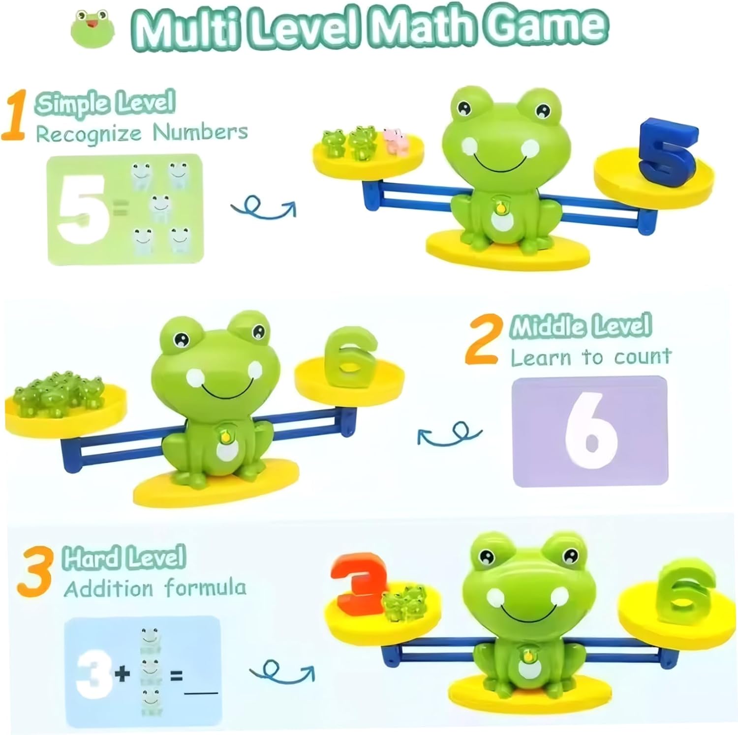 Strumento di apprendimento interattivo: aiuta i bambini piccoli a comprendere i numeri, l'aggiunta e i primi concetti di matematica attraverso il bilanciamento e la corrispondenza pratica. Materiali sicuri e adatti ai bambini: realizzati in plastica non tossica con bordi lisci, garantendo un gioco sicuro per piccole mani. Perfetto per la casa o la classe: ottimo per genitori, insegnanti e caregiver per supportare lo sviluppo matematico precoce a casa o in ambienti educativi. Focus sull'istruzione: incoraggia il pensiero critico, la risoluzione dei problemi e le prime capacità analitiche mentre i bambini abbinano correttamente il numero e l'equilibrio. Design luminoso e coinvolgente: la scala colorata di rana e le mini rane carine catturano l'attenzione dei bambini e rendono eccitante l'apprendimento della matematica.