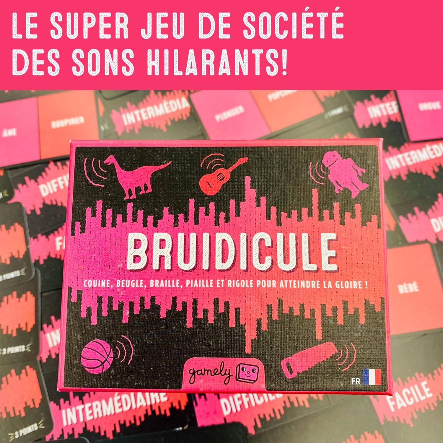 🎉 FANTASTICAMENTE DIVERTENTE E GLORIOSAMENTE STRAVAGANTE – Bruidicule è il gioco terribilmente divertente con suoni ridicoli da giocare con la famiglia. Usa il principio delle sciarade, ma qui niente mimo: puoi fare tutto il rumore che vuoi... ma non hai il diritto di fare altro! ⏱️ REGOLE SEMPLICI PER ORE DI RISATE – Ci vogliono solo pochi minuti per imparare a giocare a Bruidicule. Preparati alle risate quando i suoni che immagini nella tua testa escono dalla tua bocca... diversamente da quanto ti aspetti! 😂 RISATE PER TUTTE LE ETÀ – Bruidicule riunisce tutte le generazioni. Tra la nonna che ulula come un lupo, gli amici che imitano l'asciugatrice e i bambini che suonano la tromba, le risate sono inevitabili! 👪 AMATO DA BAMBINI, RAGAZZI E ADULTI – Il gioco offre tre livelli di difficoltà: facile (scimmia, treno, mangiare), medio (didgeridoo, montagne russe, scossa elettrica) e difficile (lotta, immersioni subacquee, picchio). Che tu sia un professionista del rumore o che il tuo serpente a sonagli assomigli a un bollitore, Bruidicule ti farà urlare... dalle risate. 🧳 PICCOLO FORMATO, DIVERTENTE OVUNQUE – Bruidicule è ultracompatto (ha le dimensioni di due mazzi di carte). Perfetto da portare in vacanza, a cena, o per la serata di Natale. È il gioco che crea l'atmosfera per la tua prossima serata di gioco o riunione di famiglia. 🌱 CREATO DA GAMELY, UN'AZIENDA INDIPENDENTE E IMPEGNATA Gamely dona il 10% dei suoi profitti ad associazioni, pianta più alberi di quanti ne utilizza e offre ogni anno migliaia di giochi a buone cause.