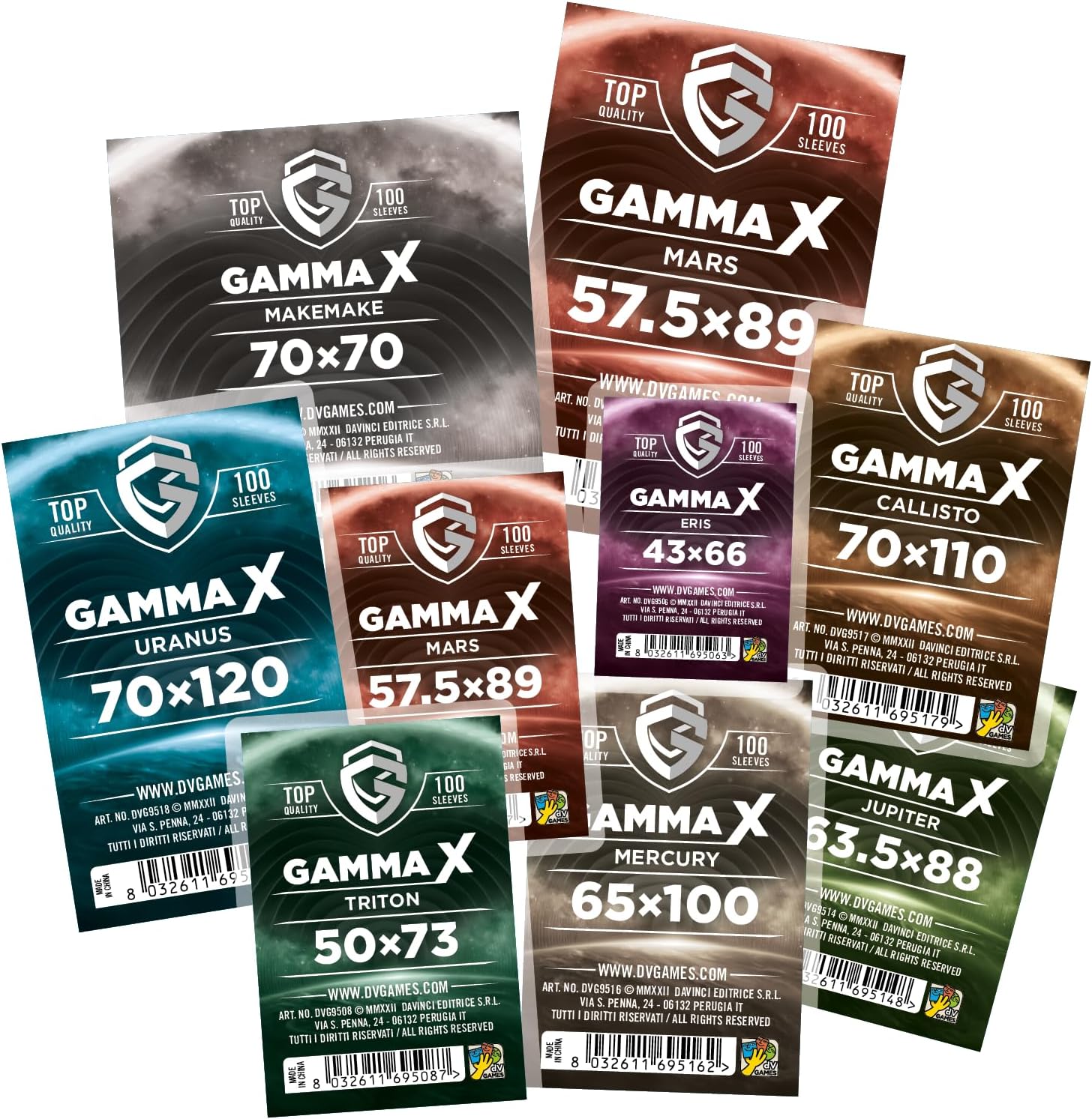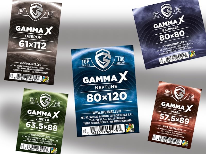 Gamma X è la prima linea di borse protettive del marchio DV Games. Grazie alla qualità e allo spessore, le custodie garantiscono una protezione affidabile per le carte da gioco, evitando l'usura e aumentando la durata dei vostri giochi da tavolo. Più qualità allo stesso prezzo. Tutta la gamma Gamma X ha uno spessore di 80 micron contro i 60 della maggior parte delle bustine della stessa fascia di prezzo. DV si impegna a creare i formati più popolari e testarli direttamente sulle carte dei tuoi giochi preferiti.