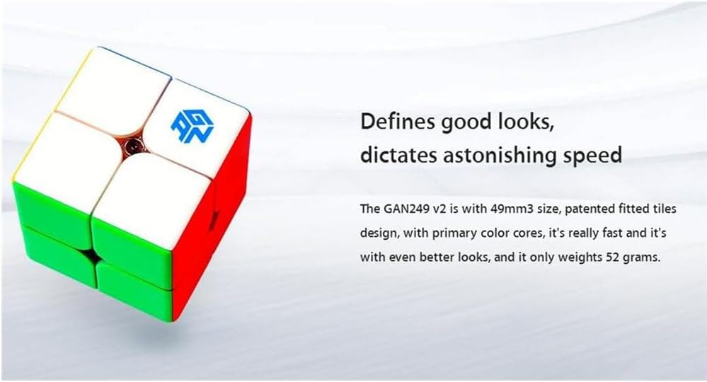 Enhanced Honeycomb Corner Design The GAN 249 features a unique honeycomb texture on contact points, delivering smoother rotations and extended lubrificante retention for long-lasting performance. Patented IPG Core for Precision Control Equipped with GAN's innovative IPG core system, this 2x2 cube offers refined turning resistance—responsive yet perfectly controllable for all skill levels. Vibrante Stickerless Color Scheme The GAN249 V2's stickerless bright-color tiles ensure instant color recognition even during high-speed solves, reducing misalignment errors. Ultra-Lightweight Speed Machine Weighing just 52 g, its featherlight build enhances hand feel and accelerates rotation speed for effortless fingertip control.