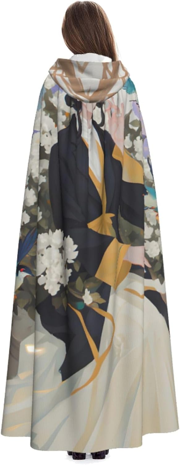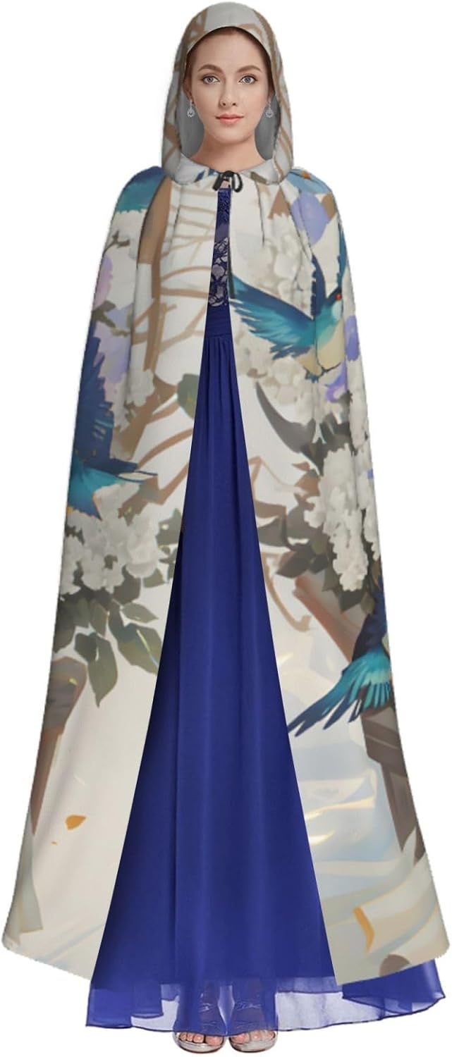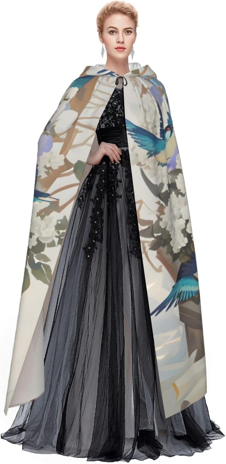Gardenia, mantello con cappuccio per Halloween e cosplay, con stampa di fiori e uccelli, comodo mantello con cappuccio per adulti