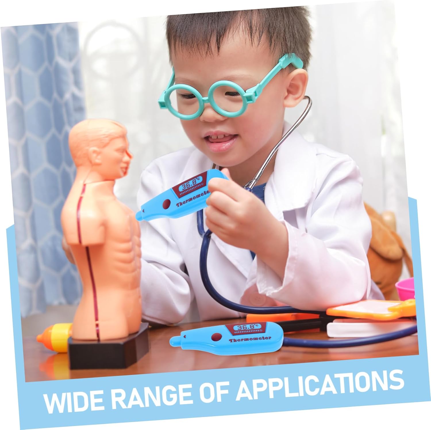 Apprendimento interattivo: questo set da gioco promuove l'apprendimento interattivo, aiutando i a sviluppare le loro capacità motorie e la coordinazione occhio-mano, di pronto soccorso per neonati, falso termometro Sicuro per i piccoli: realizzati in plastica, questi accessori sono sicuri per i 3 anni in su, garantendo loro di poter giocare in sicurezza, giocattolo costume da dottore, accessorio termometro da dottore Divertimento di gioco di ruolo: lascia che il tuo provi l'emozione di essere un con questo realistico e un set di accessori per medici, giocattolo da dottore, giocattolo in costume da dottore per Ottimo per travestirsi: ottimo per travestirsi e giocare a finzione, questo set è ideale per i che amano giocare a dottore e infermiere, costume da dottore, kit da dottore per giocare a finzione Materiali sicuri: realizzati in plastica, questi accessori sono sicuri per i 3 anni in su, garantendo loro di poter giocare senza alcun rischio, giocattolo termometro da dottore, gioco di finzione