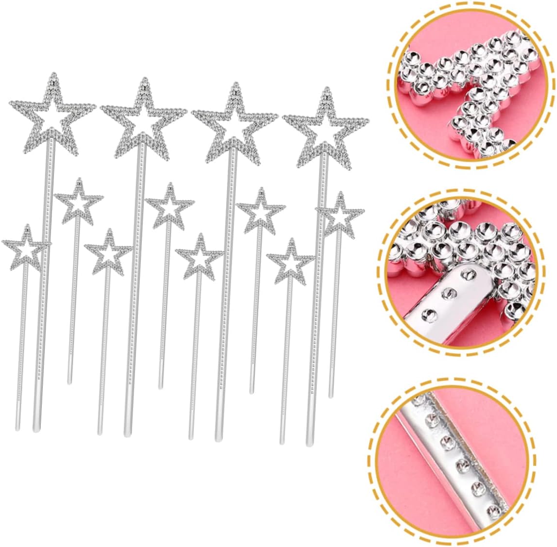 Bacchette fatate: fatata a forma di stella, rendi la tua bambina più adorabile e accattivante, bacchette fatate a forma di stella Bastoncini di fata a forma di stella: belli e pratici, leggeri e facili da impugnare, permettono ai tuoi bambini di divertirsi, magica giocattolo magica decorativa: cinque con design glitterato, questa magica è un per le tue bambine, bacchette magiche per giochi di società. giocattolo per spettacoli teatrali: la magica creativa a forma di stella può abbinarsi ai vestiti del tuo bambino e renderlo più bello, giocattoli con magica. Bacchette magiche eleganti: design unico a cinque punte, unico e creativo, può rendere l'atmosfera delle fiabe più magica per il tuo bambino.