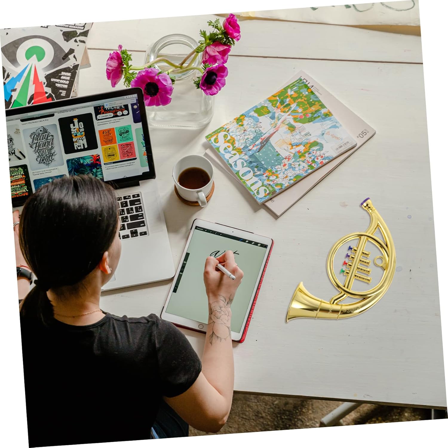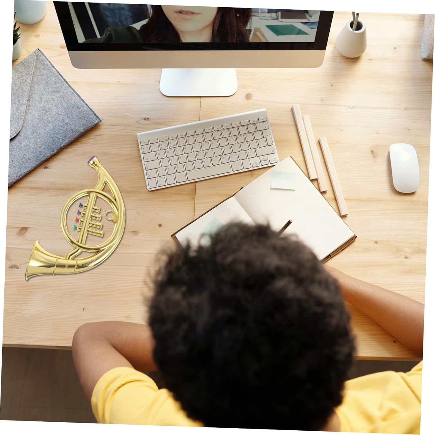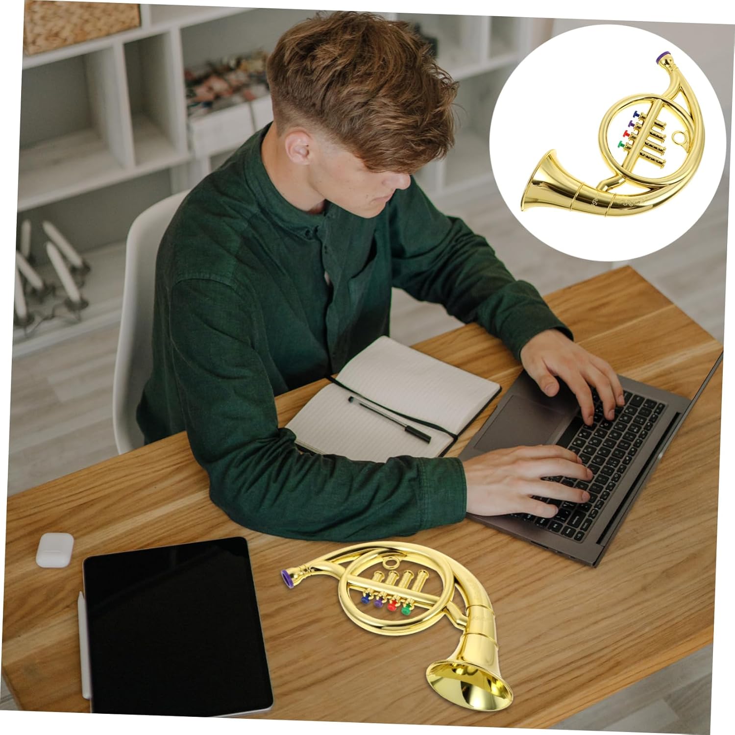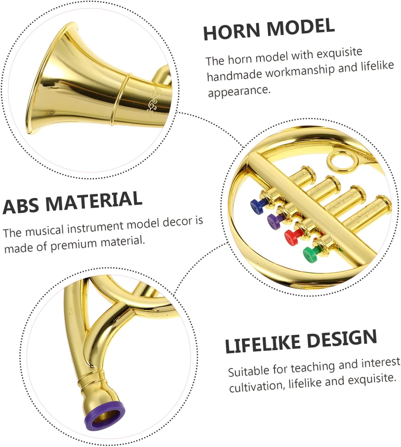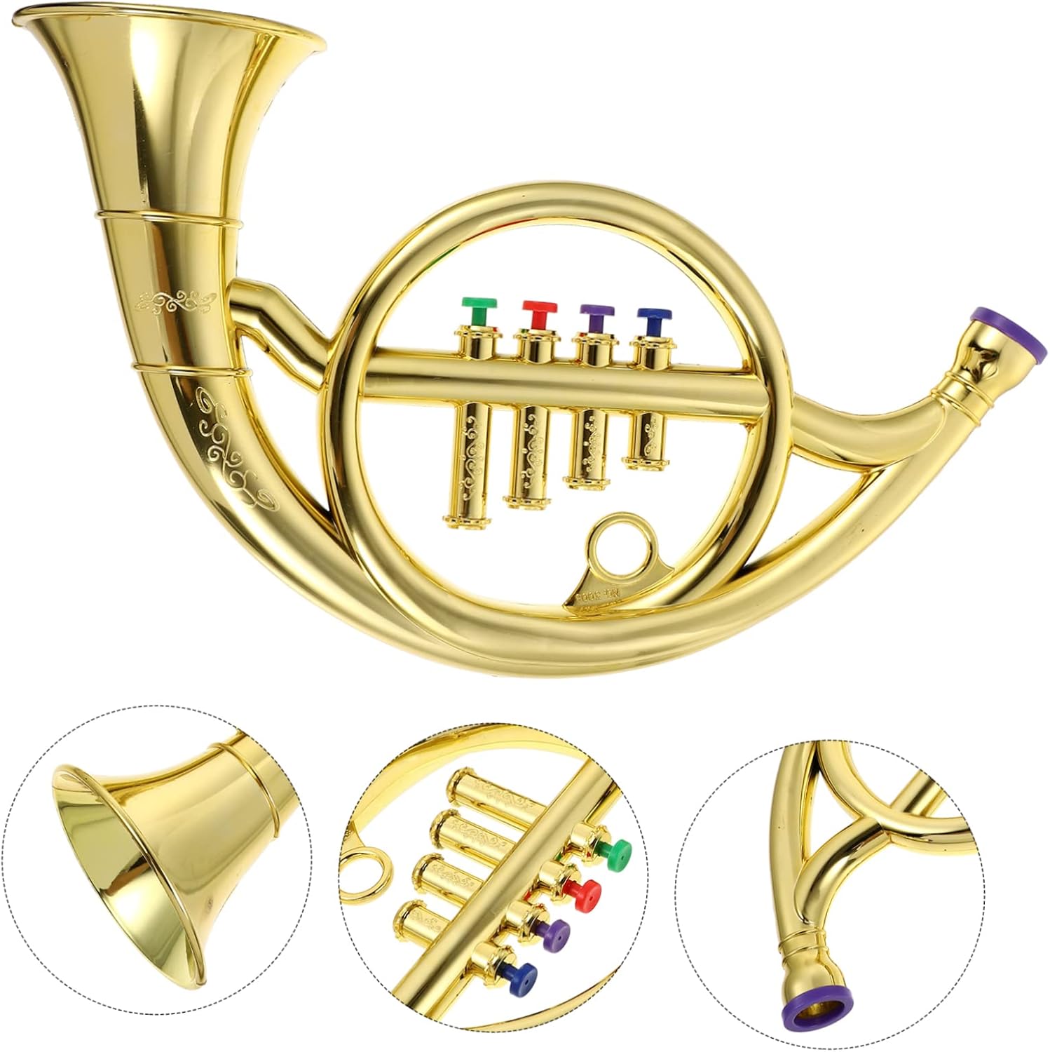 Strumento a fiato per bambini: realizzato con e abbastanza pratico da utilizzare. finto corno francese. Giocattolo per bambini con corno francese: lo strumento di simulazione può aumentare l'interesse dei bambini, è adatto per coltivare l'interesse, giocattolo per bambini con corno francese Strumenti musicali giocattolo a forma di corno: realizzati in materiale abs, che può essere utilizzato a lungo, strumento a forma di corno francese giocattolo Corno francese per bambini: questo di corno sembra un corno, che può attirare l'attenzione dei bambini, corno francese di scena Strumento di supporto per corno: con una lavorazione raffinata, questo giocattolo per corno è realistico e molto sicuro per i bambini che suonano il corno francese.
