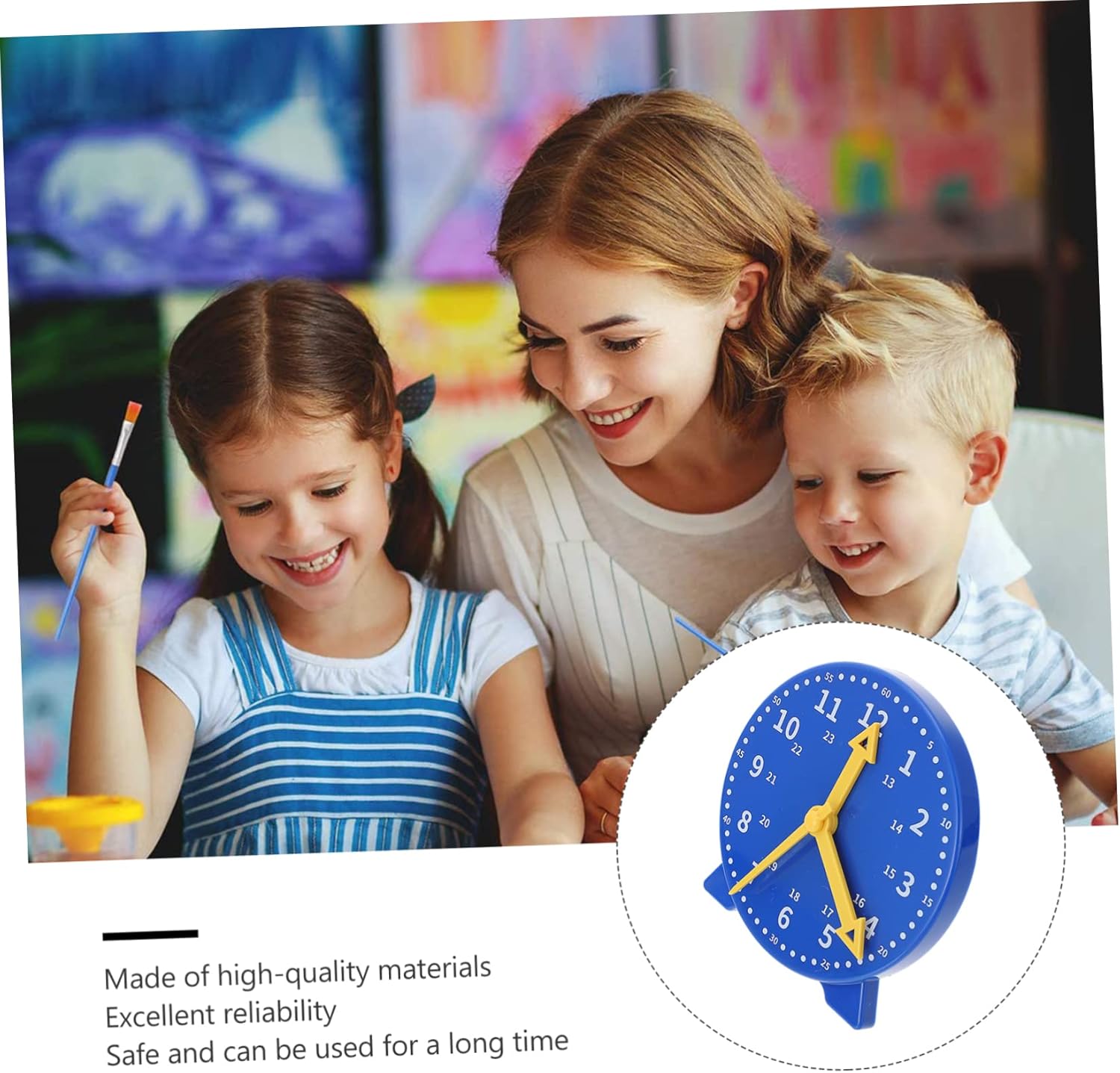 Modello di orologio didattico: aiuta i tuoi figli a capire l'ora, impara bene l'orologio, guida ad innamorarsi dell'apprendimento. Modello di orologio educativo: il modello didattico dell'orologio è interessante e affidabile, può essere rimovibile e simula il funzionamento di un orologio reale. Modello di orologio di apprendimento: puoi inviarlo a familiari e amici come regalo, saranno felici per questo prodotto creativo e pratico. Modello di orologio per bambini: i bambini apprezzeranno e apprezzeranno i colori vivaci del modello di orologio, i bambini potranno amare il bellissimo modello di orologio. Modello di orologio rotondo: può sviluppare esercitare il pensiero spaziale e l'immaginazione tuoi figli, lasciando che il tuo tempo di apprendimento.