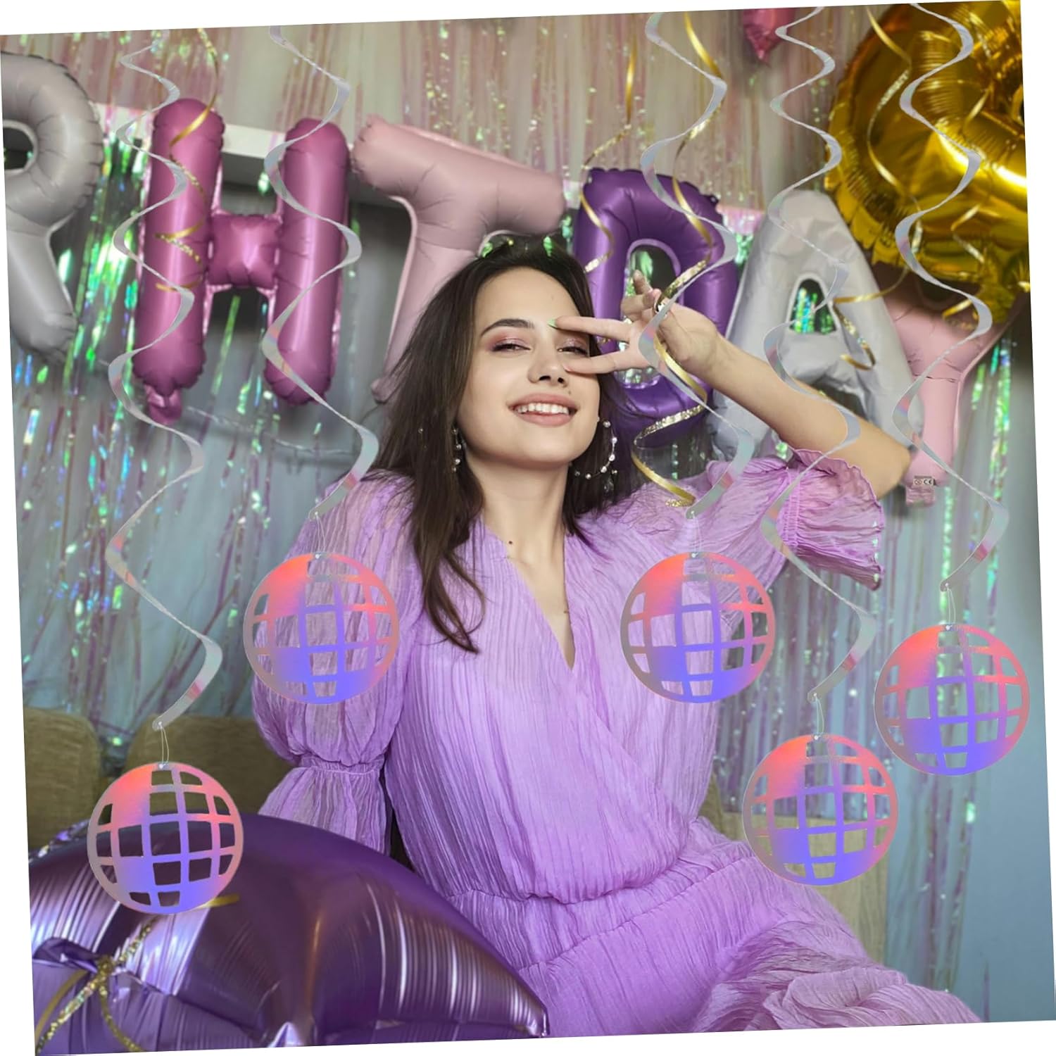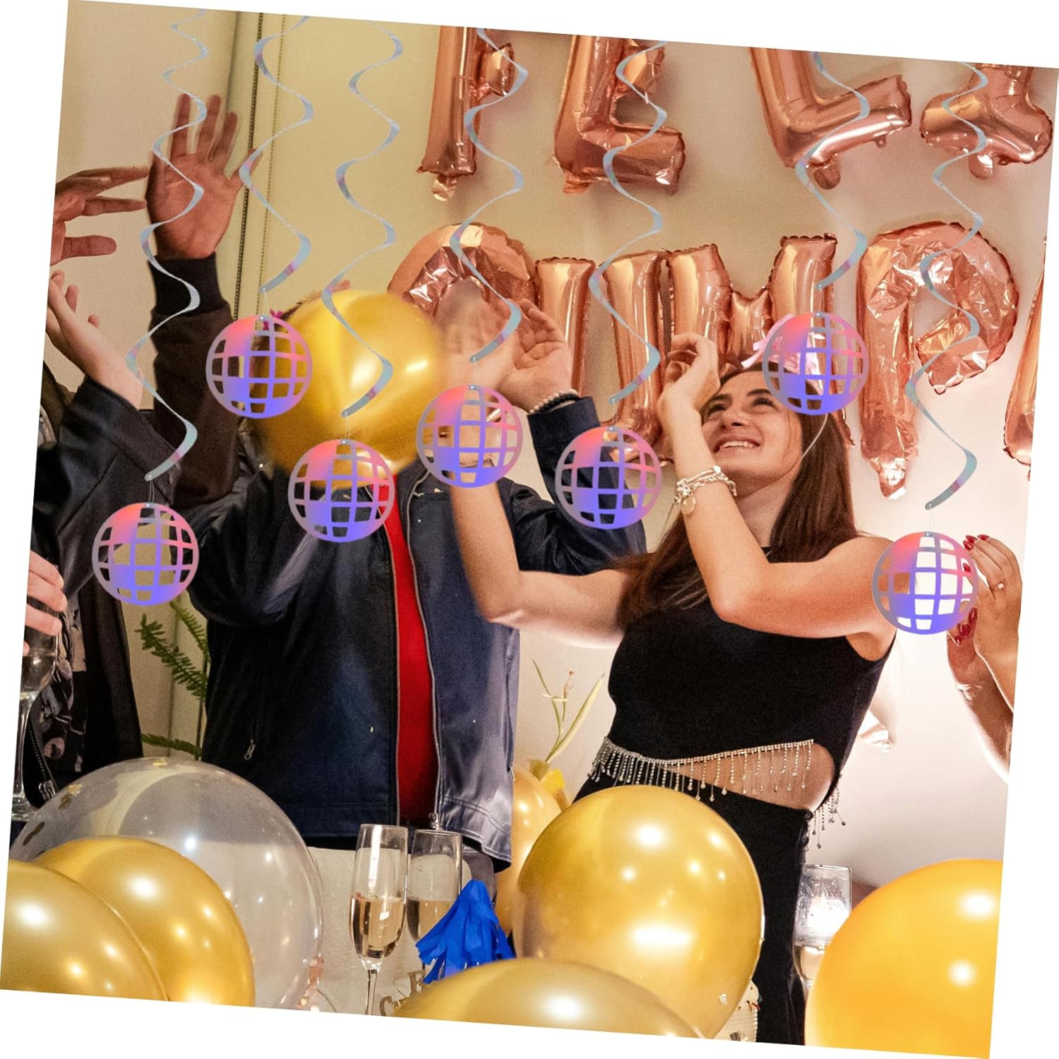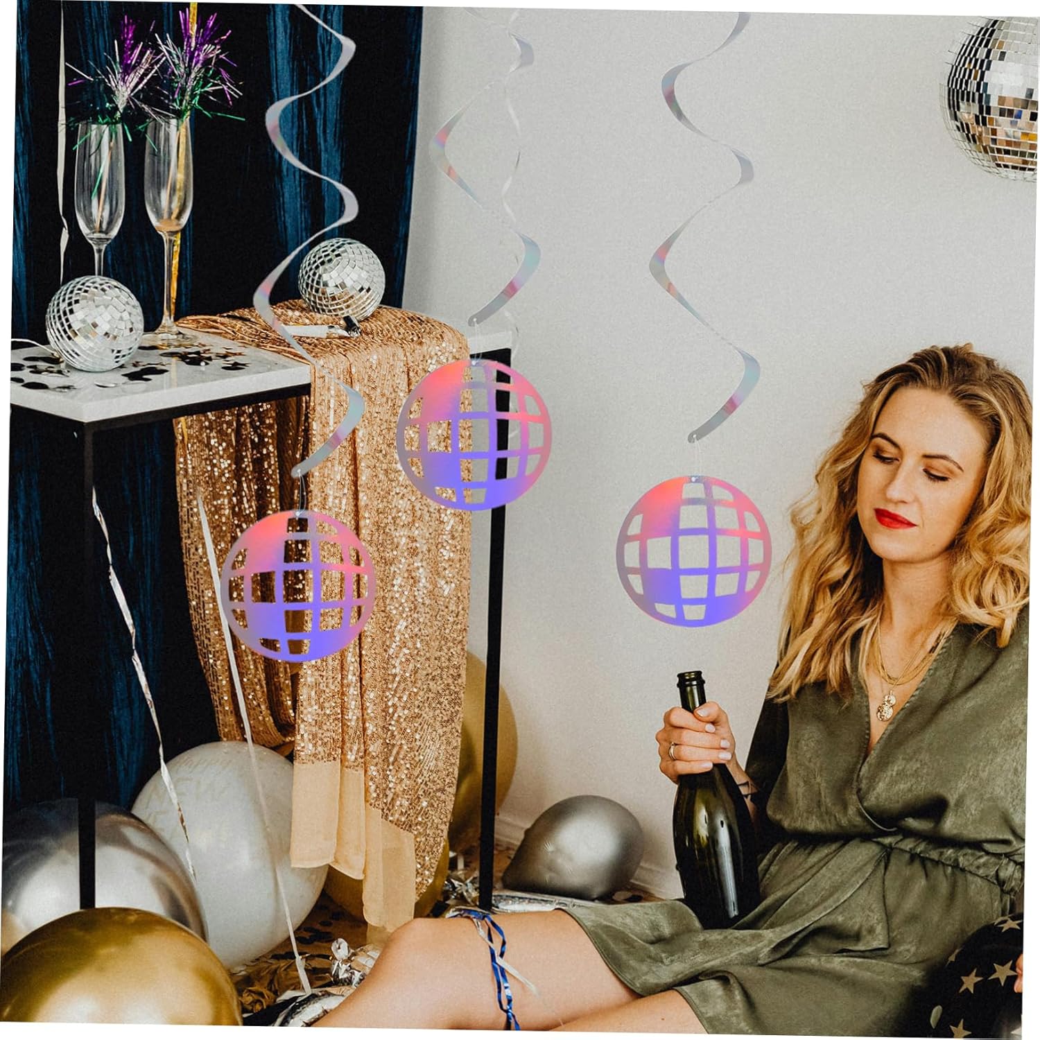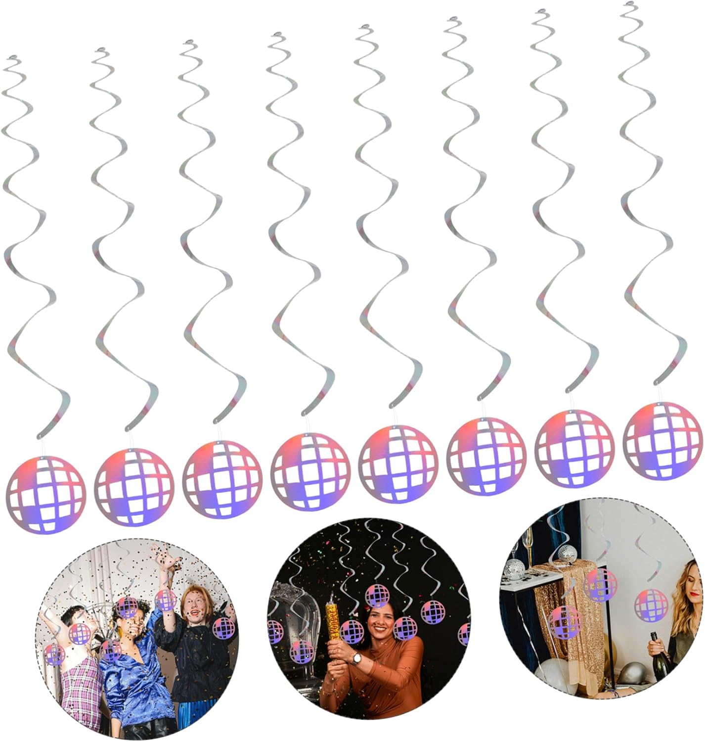 Atmosfera retrò: ricrea l'abbagliante scena della discoteca con questi arazzi olografici a spirale, adatti per aggiungere un tocco retrò a qualsiasi evento, decorazioni per feste con palla da discoteca, decorazioni a tema per feste Design a spirale unico: la forma a spirale migliora l'impatto visivo delle tue decorazioni, creando un punto focale accattivante, decorazione di halloween, ciondoli per feste Appeal olografico: le spirali da discoteca retrò presentano un design olografico che conferisce un tocco di discoteca vintage alla tua festa, decorazioni a spirale appese a sfera da discoteca, decorazioni da discoteca a spirale Design retrò: la decorazione sospesa a spirale olografica da discoteca riporta in auge la discoteca, aggiungendo un'atmosfera unica alla tua festa, decorazioni sospese per feste, decorazioni per feste di natale Materiale leggero: le ghirlande sono leggere, il che le rende facili da installare e rimuovere, adattandosi in modo flessibile alle diverse esigenze di decorazione del luogo, spirale sospesa per festival, decorazioni per feste