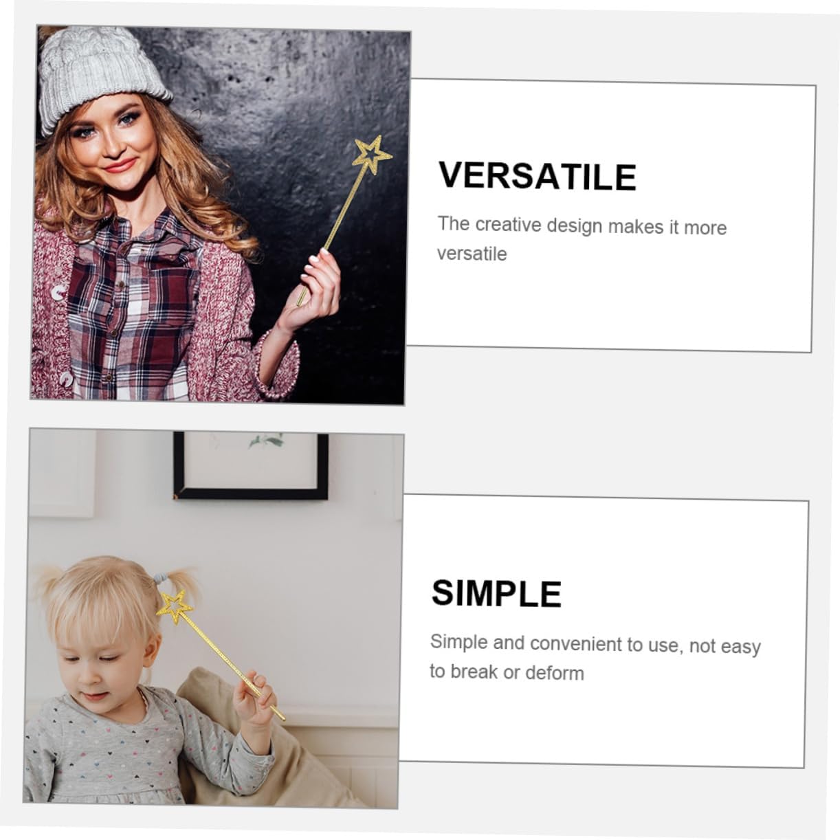 Bacchetta da strega: la bacchetta da fata può essere utilizzata come accessorio per cosplay, concerti, balli, feste e fotografia, bacchetta da fata decorativa Bastoncini delle fate: la bacchetta delle fate è progettata per aiutarti a creare un'atmosfera calda per divertirti, bacchetta delle fate lucida Bacchetta fatata con punta a stella: dotata di capacità di resistenza alla rottura, molto pratica, con un'eccellente consistenza, bacchette fatate per ragazze Bacchetta da fata per cosplay: unica a forma di stella, decorativa e creativa, per creare un'atmosfera da favola per le tue feste, accessorio per feste in cosplay Bacchetta giocattolo per spettacoli teatrali: vivaci e un grazioso aspetto a forma di stella rendono la bacchetta fatata molto adatta per essere ricevuta dagli amici, bacchette fatate per ragazze