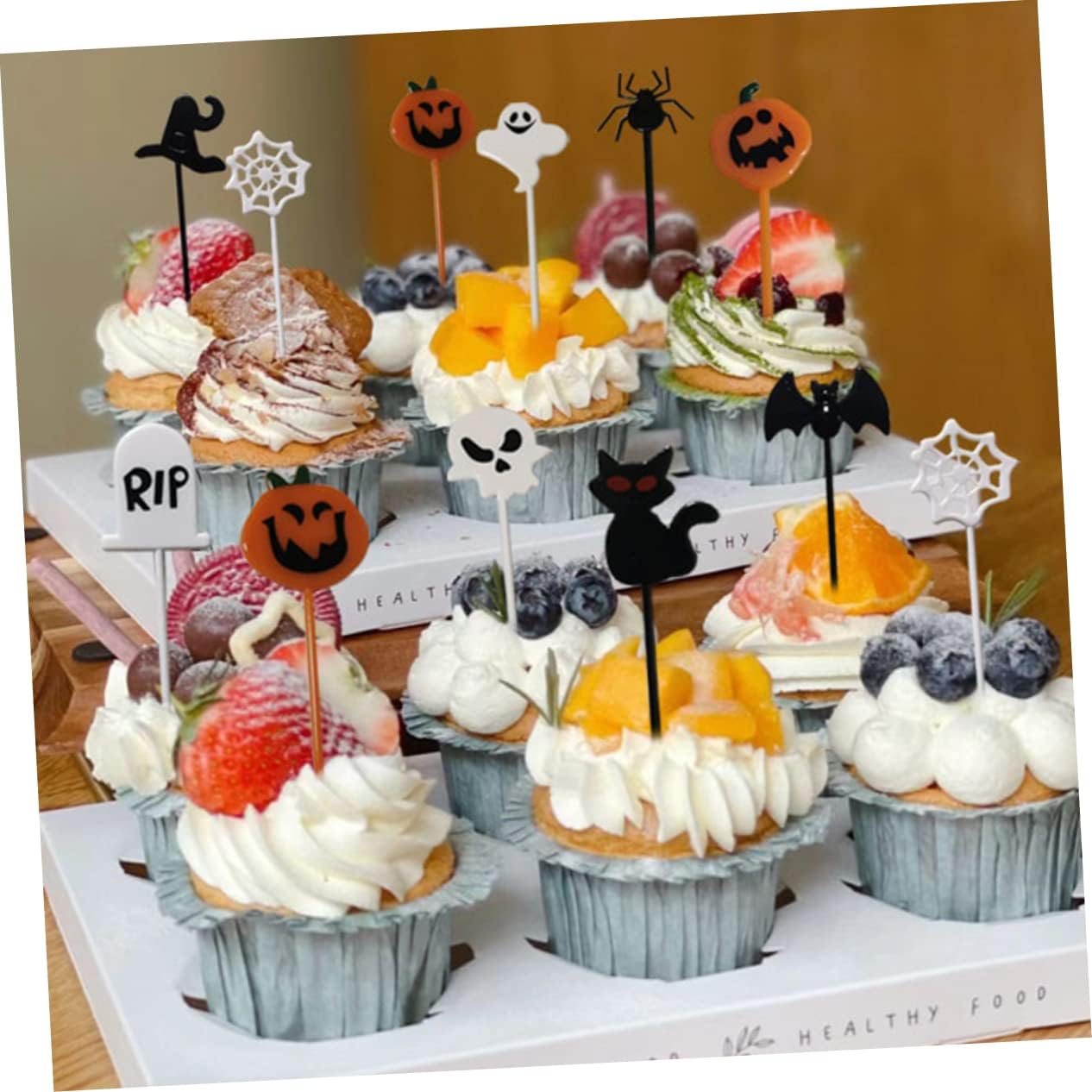 Decorazioni di Halloween Ragno - Forniture e decorazioni per feste aggiungono un'atmosfera festosa alla festa di Halloween, bastoncini da dessert. Topper per cupcake per feste: realizzati in materiale robusto, raffinato e affascinante, che crea un'atmosfera calda ed elegante. Halloween: puoi acquistare facilmente questo pratico e decorativo topper per cupcake di Food Decor. Plettri per cupcake di Halloween: design e lavorazione chic e vivaci per rendere la tua torta più deliziosa, decorazioni per torte. Topper per dolci e torte - Potrai goderti una festa di Halloween felice e divertente con queste decorazioni e toppers da forno.