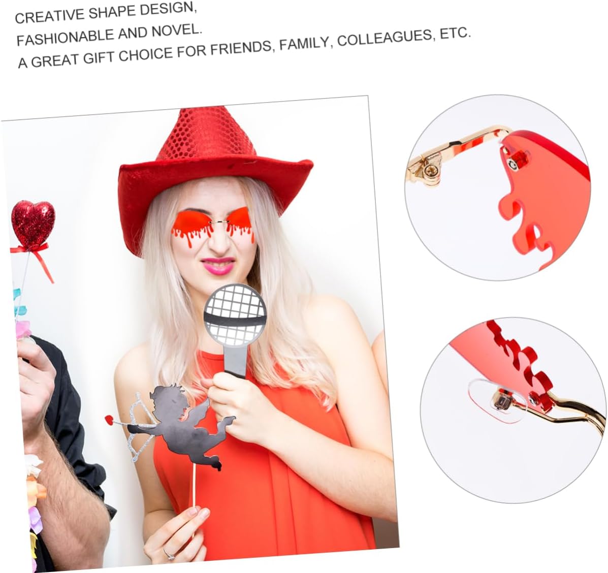 include 1 x occhiali sole Caratteristiche -Informazioni prodotto:Occhiali sole dalla speciale - Materiale: occhiali sole divertenti in metallo. - Colore: Divertenti occhiali per feste. - Dimensioni: circa 14x13,5x5 cm/ 5,5x5,31x1,97 pollici divertenti occhiali. - progettazione e produzione, per occhiali cartone animato resistenti e pratici. - Bellissimi e occhiali sole colorati e in materiale adatto per le feste. - Occhiali sole , leggeri e facili trasportare, indossare. - Design della montatura dalla speciale, adatto , accessori per selfie e occhiali sole colorati - Indossa questo paio occhiali e diventerai la star della con gli occhiali sole decorativi. Descrizione della merce occhiali sole colorati per foto feste , materiali qualità, design naturale, adatti all'atmosfera vacanziera, dimensioni adatte maggior parte delle persone, e non male, aumentano l'atmosfera vacanziera