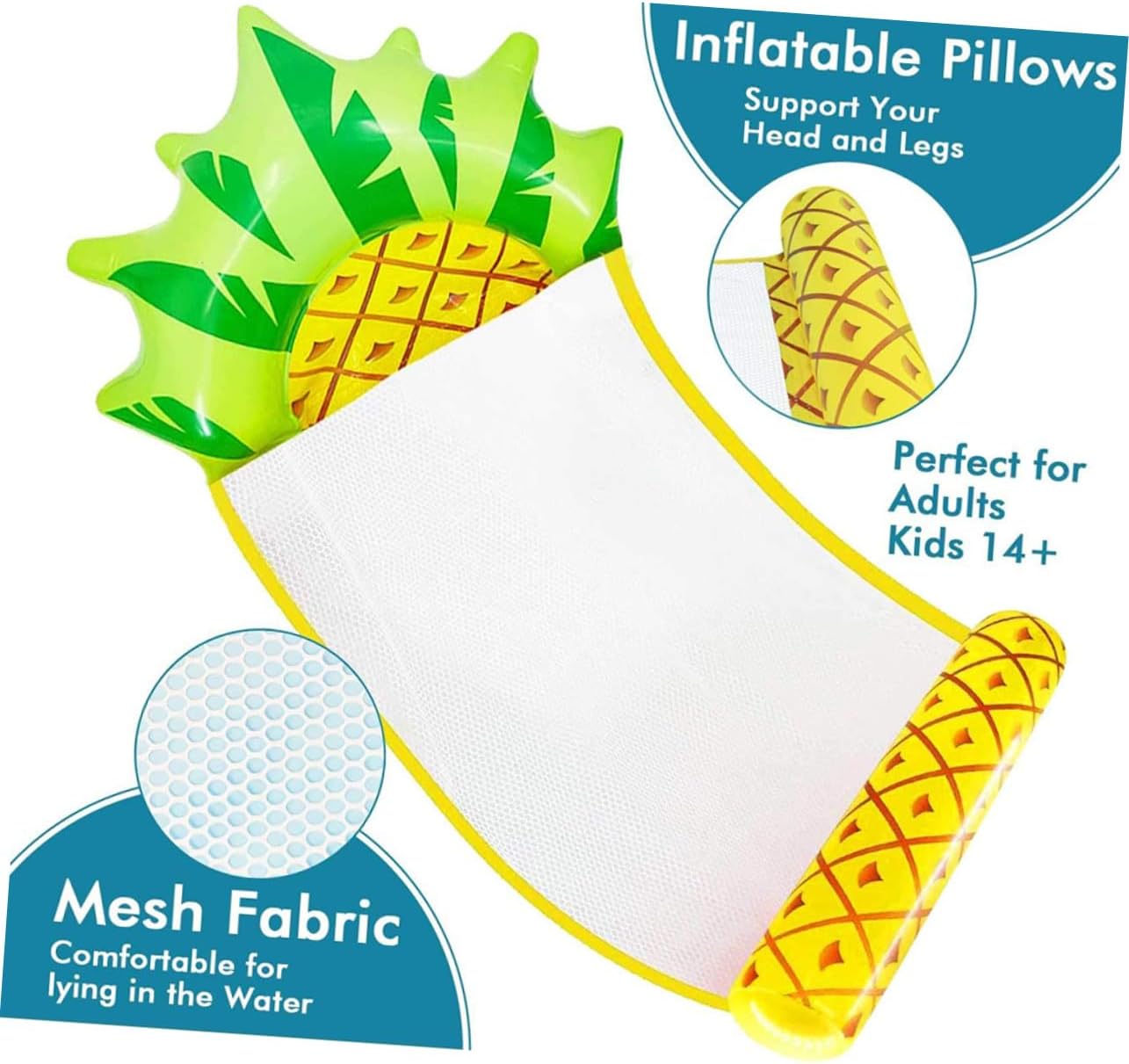 Tappetino da picnic galleggiante sull'acqua - nessuna perdita, facile e sicuro da usare, adatto per la piscina estiva, leggero e può essere facilmente riposto come un ombrello pieghevole, comodo da portare ovunque, lettino galleggiante per la piscina, tappetino galleggiante per il lago - il modello creativo di ananas, che è speciale e bello e attira le persone, ausili per il nuoto per piscine d'acqua, tappetino galleggiante per barche - per riposare o prendere il sole, il tappetino galleggiante autogonfiabile è la scelta migliore, perfetto per l'uso alle feste in piscina Galleggiante per piscina con frutta - Realizzato in materiale PVC di alta qualità per uso durevole e pratico. Goditi il divertimento con questo galleggiante per piscina, un tappetino galleggiante per l'acqua Tappetino galleggiante per l'acqua per la piscina - perfetto per le feste in piscina, un ottimo dispositivo per rilassarsi sull'acqua, tappetino galleggiante