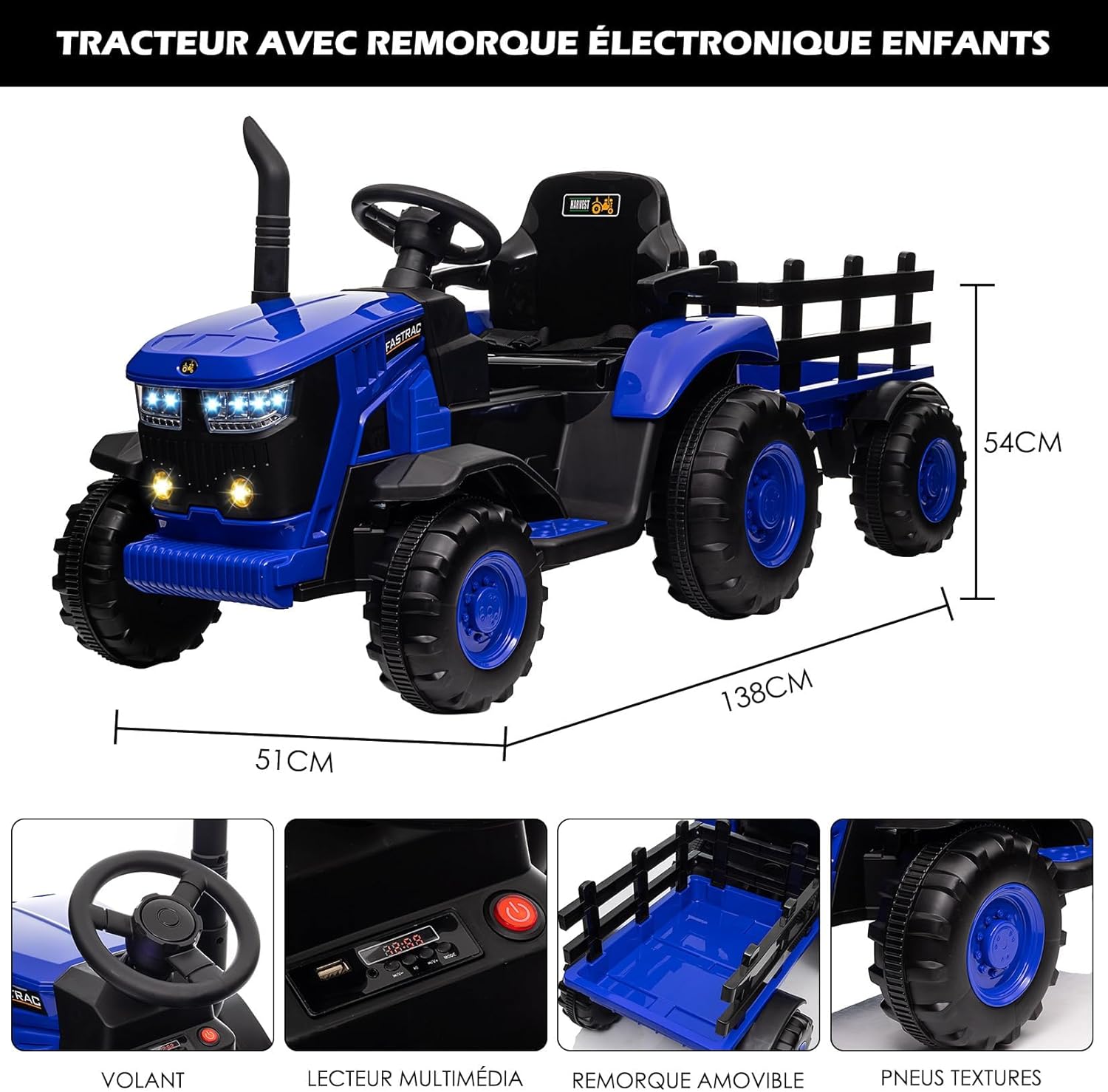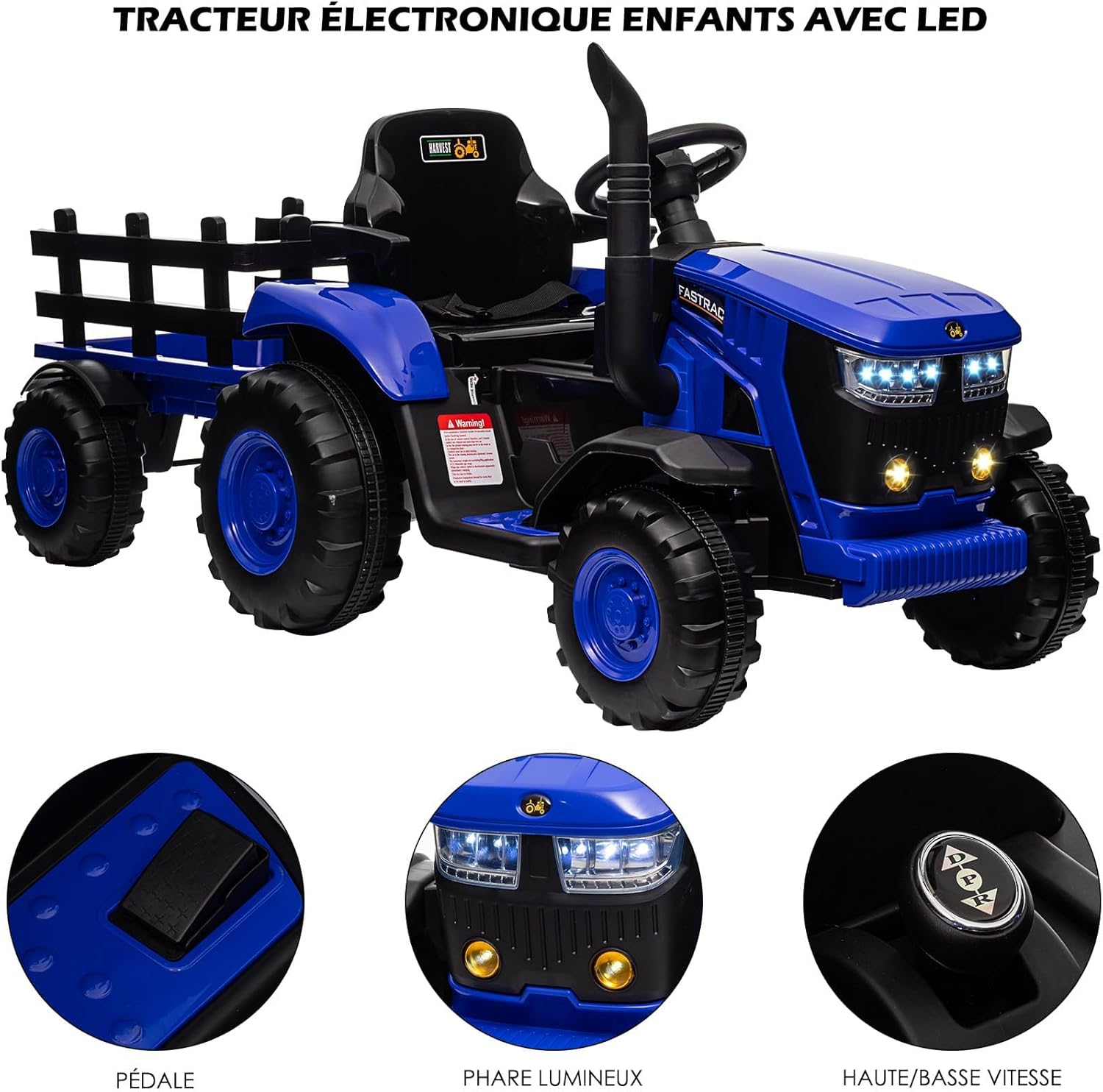 Due modalità di guida: Il trattore elettrico per bambini è dotato di un telecomando che permette ai genitori di supervisionare e controllare i movimenti del trattore, garantendo maggiore sicurezza ai bambini. I piccoli possono anche guidare autonomamente utilizzando il pedale. Rimorchio staccabile: Questo trattore elettrico include un rimorchio rimovibile, perfetto per trasportare piccoli giocattoli e snack. Consente ai bambini di guidare in giardino o in cortile e di portare con sé attrezzi e forniture da giardinaggio, rendendo il gioco ancora più divertente. Esperienza di guida realistica: Regala ai tuoi bimbi una vera esperienza di guida. Dopo aver premuto il pulsante di avvio, i bambini possono far muovere il trattore in avanti grazie a due velocità regolabili e possono anche guidare all’indietro con la velocità bassa. Divertimento integrato: Il clacson alimentato ad aria produce suoni realistici e coinvolgenti, mentre la tecnologia Bluetooth e il sistema MP3 integrato permettono di ascoltare la musica o le storie preferite dei tuoi bambini. Prestazioni eccezionali: Grazie alla batteria ricaricabile ad alta capacità e a due potenti motori da 35W, questo trattore elettrico per bambini è in grado di affrontare facilmente prati, terra e ghiaia, offrendo una lunga autonomia e supportando un carico massimo di 30 kg.