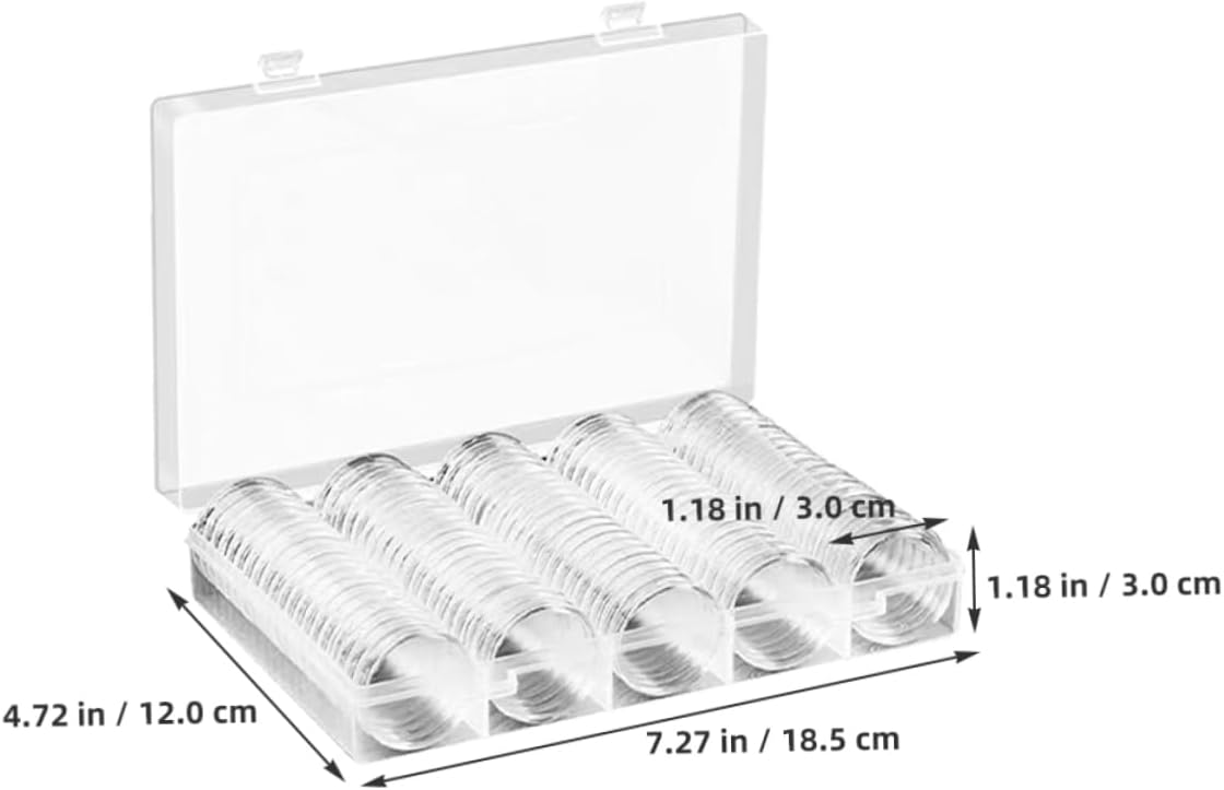 Display cristallino: il materiale trasparente offre una visione libera delle monete, consentendo ai collezionisti di ammirare i dettagli intricati senza estrarli, vetrina da collezione, vetrina per monete Vetrina altamente trasparente: il materiale plastico trasparente offre una visione delle monete e consente ai collezionisti di apprezzare i dettagli complessi, portamonete in plastica, portamonete trasparente Design su misura: con dimensioni precise di 30 mm progettate per tenere le monete al sicuro e proteggerle dal movimento e da possibili danni durante la conservazione o il trasporto, custodia protettiva per monete, portamonete in plastica Design: la superficie lucida migliora la tua collezione ed è adatto sia per la conservazione che per l'esposizione, come organizer per monete e come portacapsule trasparente Conservazione multiuso: il design trasparente ne consente l'uso, ideale per conservare monete o altri piccoli oggetti da collezione con e protezione, capsula portamonete trasparente, capsule organizer