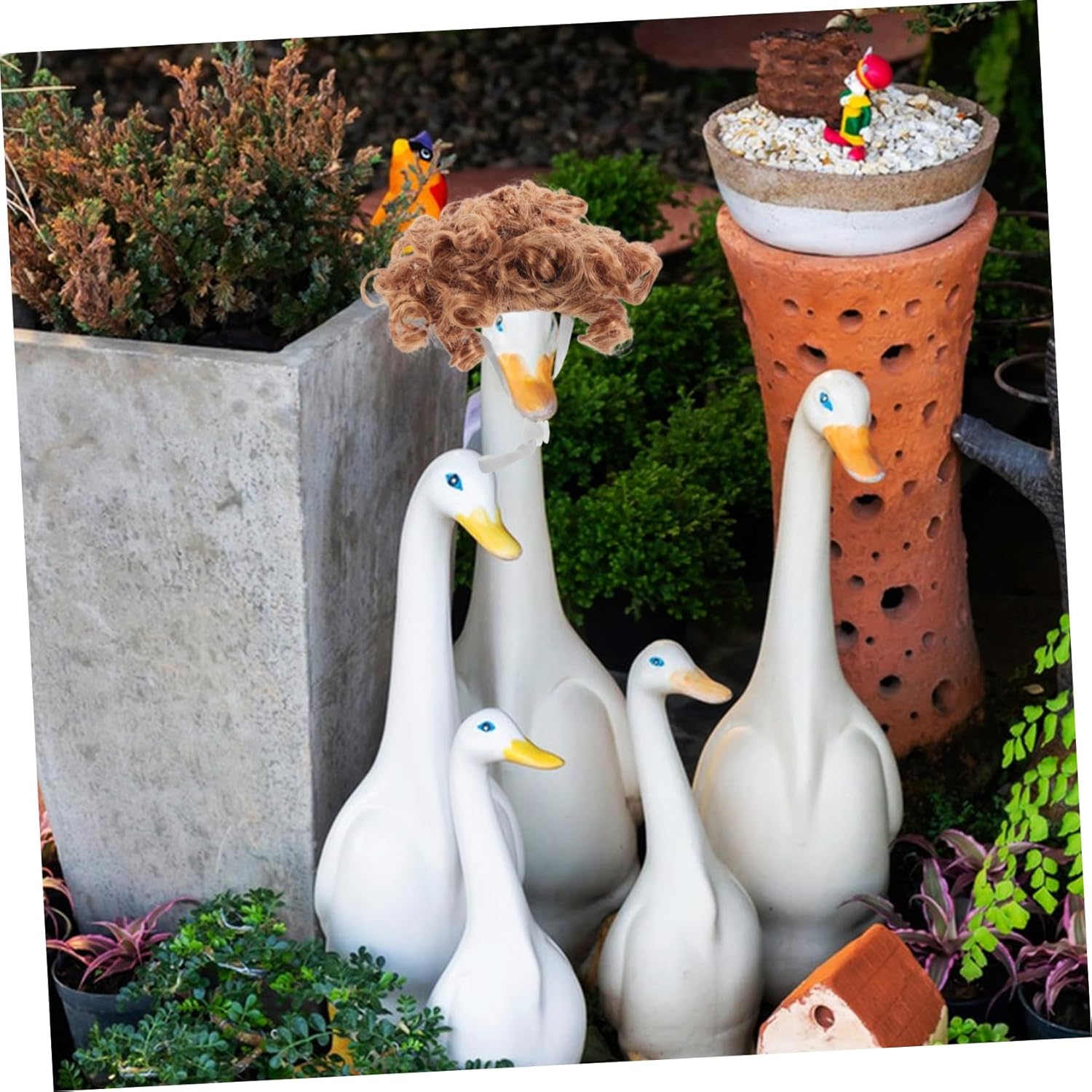 Design: progettate con cinghie regolabili ed elastici, queste parrucche si adattano saldamente a oche di varie dimensioni, offrendo comfort e stile senza problemi, accessori per figure d'oca, costume del ringraziamento dell'oca del portico Decorazione da giardino unica: trasforma la tua oca da giardino in un elemento distintivo con acconciature, mostrando la tua creatività e rendendo il tuo arredamento esterno davvero speciale, vestito da oca da festa, decorazione da oca da veranda Dimensioni regolabili: dotate di elastici e clip regolabili, le parrucche assicurano una vestibilità sicura ed elegante per oche di tutte le taglie, rimanendo in posizione senza scivolare, vestire l'oca, statua dell'oca Aggiungi divertimento al tuo arredamento: valorizza la statua dell'oca del tuo portico con le nostre parrucche progettate con cura, creando un'atmosfera calda e invitante per la famiglia e gli amici da godersi insieme, decorazione dell'oca, costume dell'oca Arredamento: la tua oca da giardino con acconciature uniche, trasformandola in un elemento distintivo che riflette la tua personalità e il tuo stile, costume da oca da giardino, da oca da veranda
