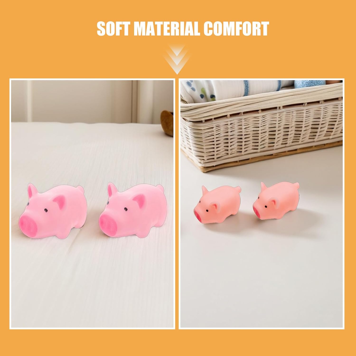 Squishy Pig: divertiti con i morbidi giocattoli a forma di animale, che non pungono e sono pensati per la sensibilità della pelle dei bambini, rendendo ogni bagnetto del neonato sicuro e rilassante con questi divertenti giocattoli a forma di animale Suono che potenzia le abilità: i giocattoli a forma di animale che squittiscono sono dotati di una funzione che stimola l'udito e le capacità di presa mentre i bambini piccoli stringono e giocano con i loro mini Squishies preferiti Vivace fascino da maialino: questi giocattoli da bagno a forma di maialino con disegni colorati suscitano interesse come graziosi giocattoli da bagno, aggiungendo entusiasmo al bagno quotidiano come mini animali da bagno Progettati per le manine dei più piccoli: i mini giocattoli morbidi e i giocattoli per bambini sono realizzati perfettamente per le dita piccole, dando ai bambini il controllo e migliorando la coordinazione occhio-mano durante ogni bagno Valore multiuso: usali come giocattoli per la doccia dei bambini, giocattoli per bomboniere, regalini per le feste di Natale o come graziose decorazioni per il baby shower, offrendo un intrattenimento versatile per ogni occasione
