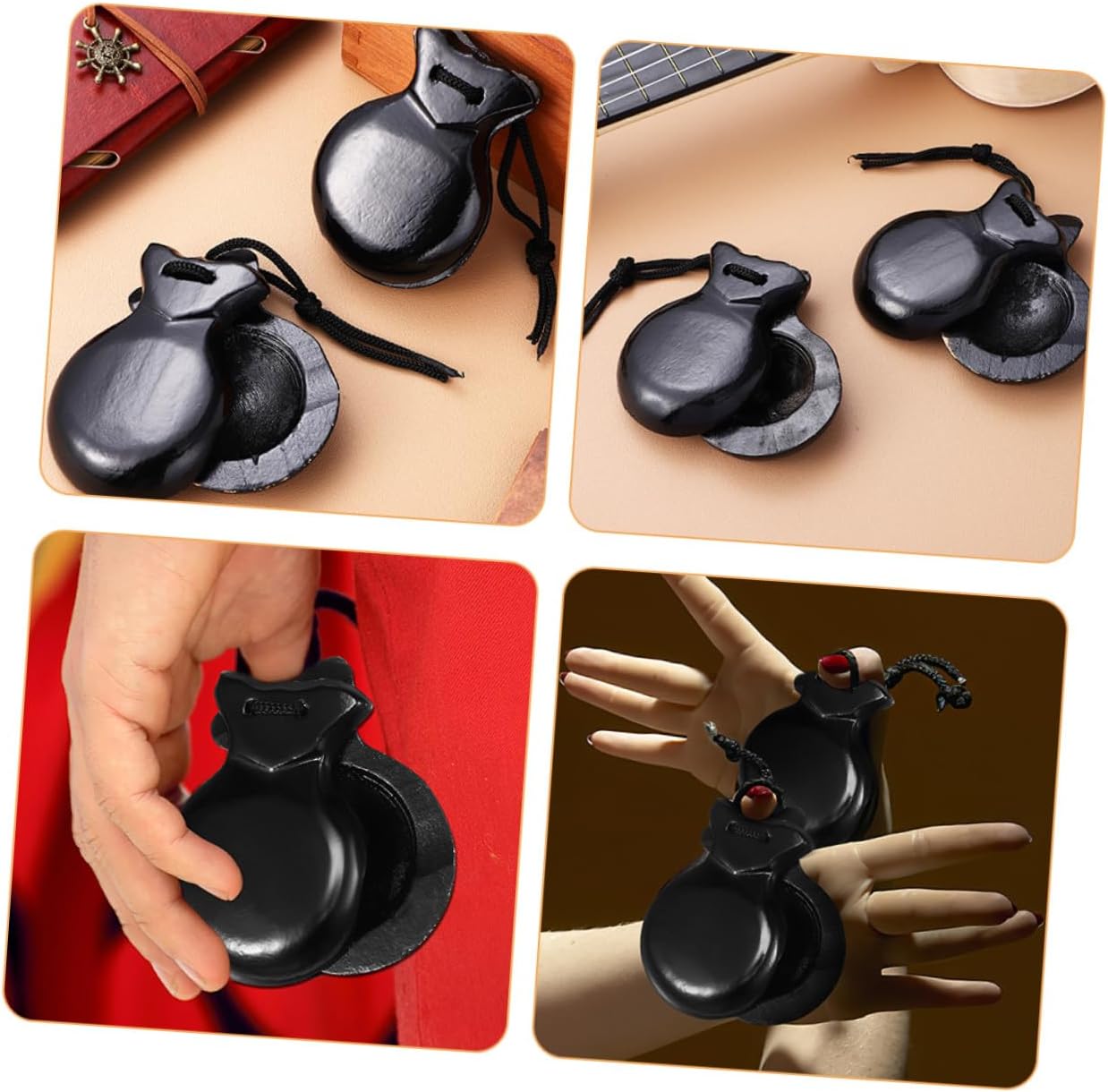 Strumento a dita: la di fabbricazione delle nacchere spagnole e la artigianale danno a uno strumento gradevole, nacchere a dita Strumenti musicali: set versatile di nacchere spagnole in legno, ideali per suonare da o per esibizioni in gruppo, percussioni Strumenti a percussione a forma di nacchere: design esterno elegante delle nacchere spagnole in legno aggiunge un tocco alla strumento, strumenti a percussione spagnoli Ottima fattura: nacchera è realizzata in legno, non facile da rompere e comoda al , piccole nacchere, strumento a percussione per nacchere Aspetto elegante: la nacchera è ben lucidata con una lucentezza fine e una superficie liscia, l'aspetto è elegante e si adatta a qualsiasi occasione, nacchere di legno, giocattolo ritmico per nacchere da dito