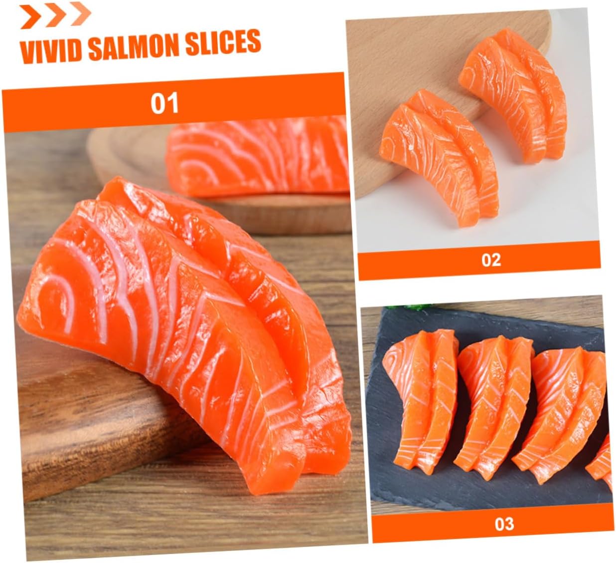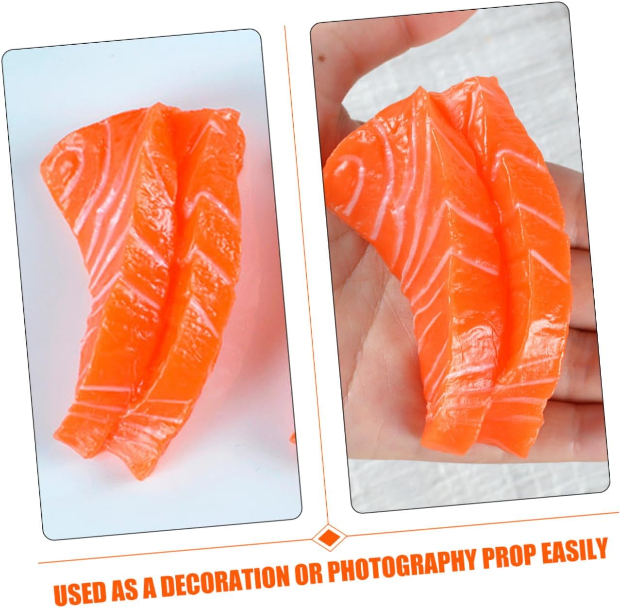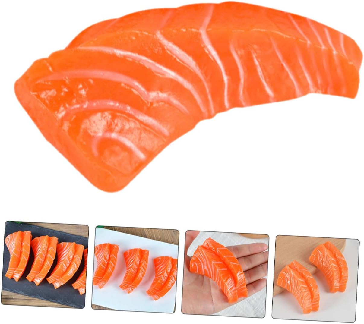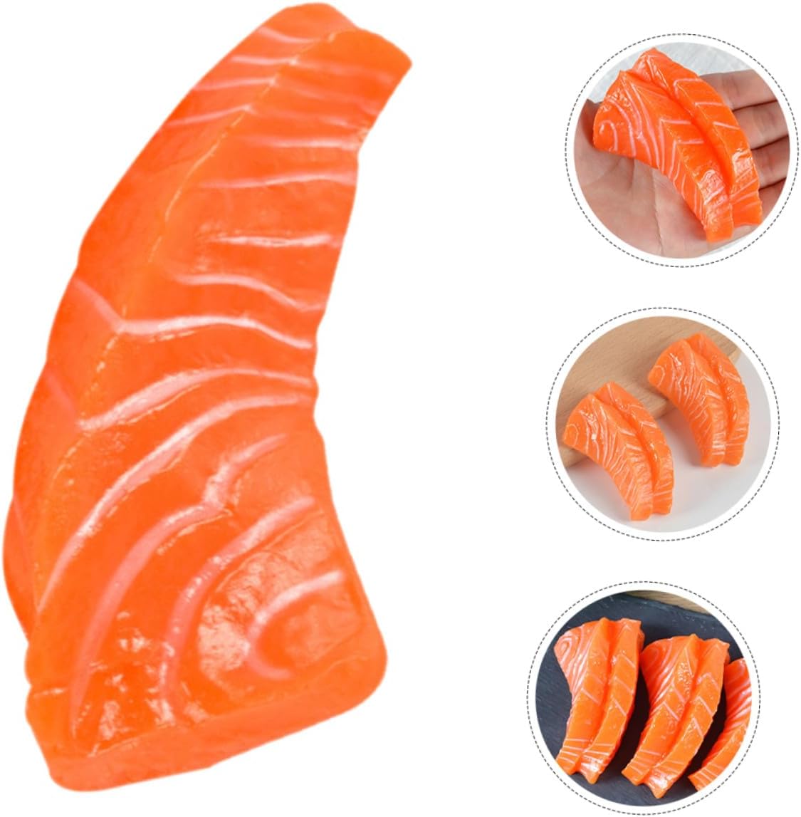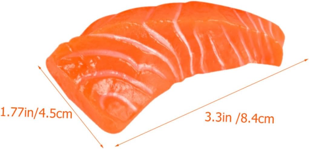 Accessori di frutta artificiale: questo di fette di salmone può essere utilizzato per pubblicità, celebrazioni di conferenze, ciondoli per l'arredamento della casa, decorazioni, artificiali Modelli di pesci artificiali: con il loro aspetto e la loro consistenza realistici, questo di fette di salmone finto è versatile per varie occasioni, alimentare Modelli di cibo finto: questo di fette di salmone simulato, realistico e realistico, può essere utilizzato facilmente come decorazione o oggetto di scena per la fotografia, fette a forma di pesce Modelli di cibo artificiale: realizzati con robusto materiale in pvc, questo di fette di salmone è durevole e pratico da usare, ampiamente utilizzato, di simulazione di pollame Oggetti di scena per l'esposizione di cibo: questo di fette di salmone ha una consistenza e un aspetto realistici, è molto vivido e realistico e molto decorativo, oggetti di scena per l'esposizione di cibo realistici