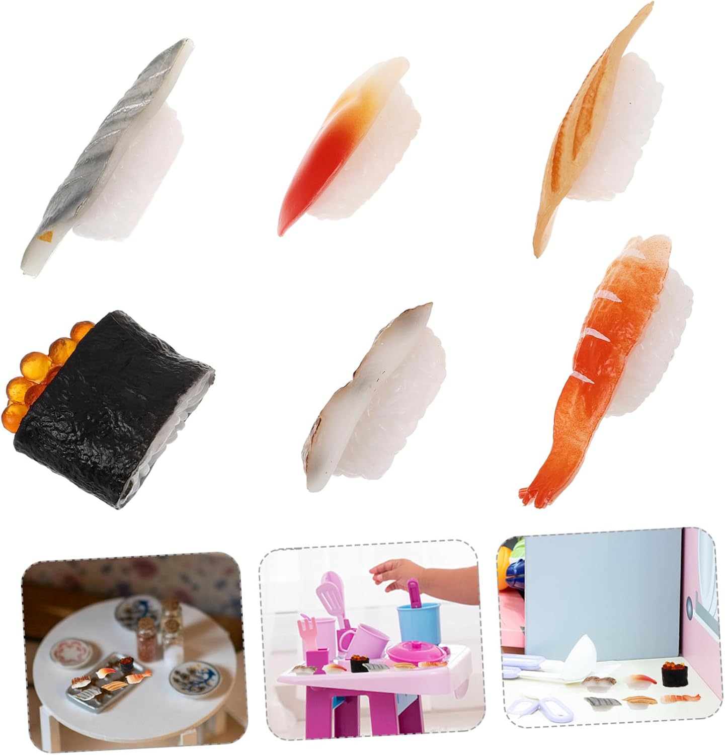 Materiale durevole: questo di cibo artificiale non si danneggia né cambia colore, sicuro e protetto per una decorazione a lungo termine, mini cibo giocattolo, cibo artificiale per esposizione Varie applicazioni: può essere un giocattolo, un oggetto di scena per la fotografia, un'esposizione di cibo, una decorazione per matrimoni e feste, un regalo per le feste, ecc., decorazioni giapponesi, cibo in miniatura Uso versatile: adatto per casa, supermercato, macelleria, scuola, soggiorno, asilo, hotel, ecc., cibo finto, cibo simulato Layout della scena: puoi usare questo di cibo simulato insieme ad altri per creare un buon layout della scena, cibo artificiale, di sushi realistico Simulazione realistica: simulazione di alto livello, realistica e decorativa, e questo di sushi ha un effetto decorativo migliore, supporto per esposizione di ristoranti, di cibo simulato