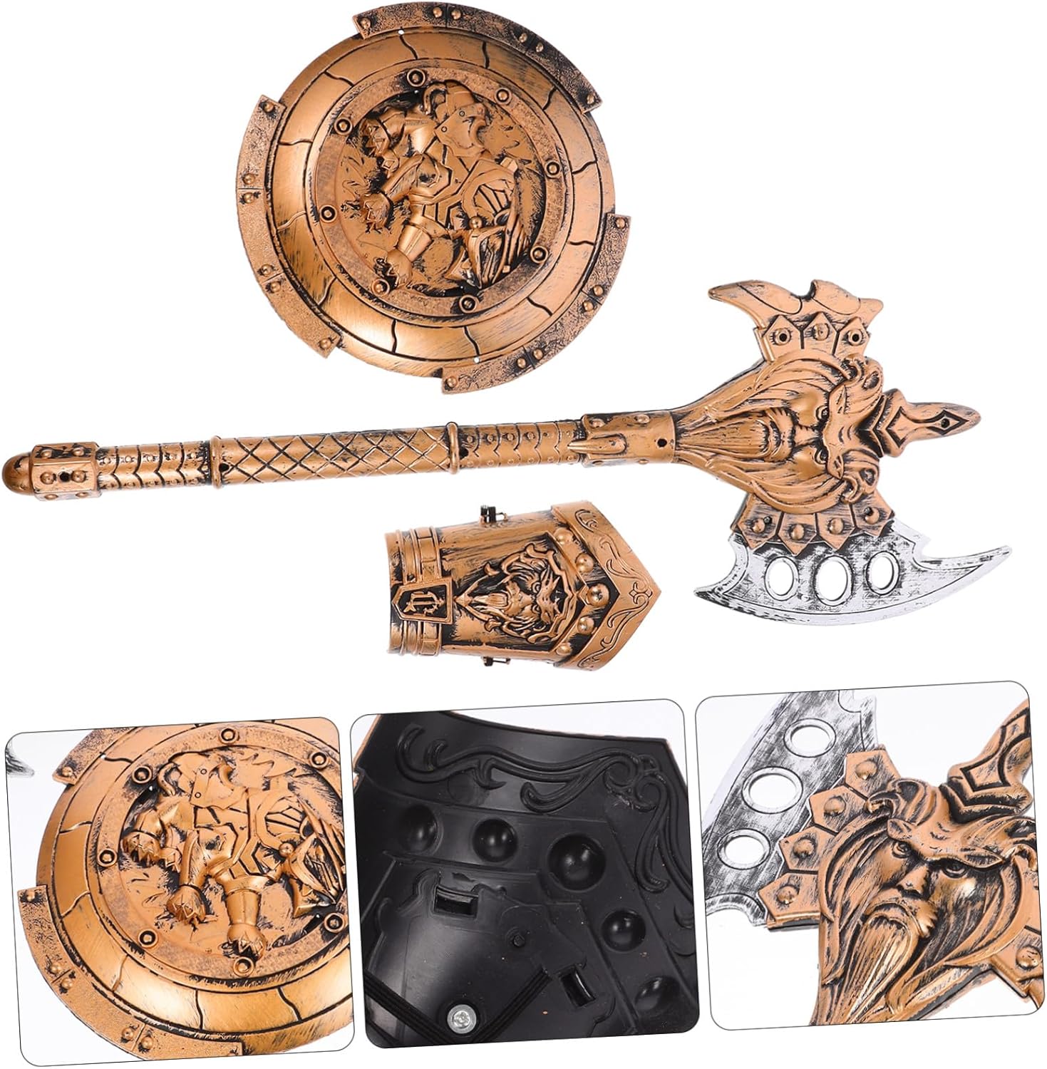 Prop: KTV, festa, cosplay, Halloween, bar, mascherata e così via, fantasioso, porta questo set da gioco ovunque e divertiti, arma per bambini Non è pesante, molto comodo da indossare e ti mette addosso un ulteriore carico pesante. -Ascia da toy boy con armatura: se ami il cosplay, allora questo set di costumi può essere meraviglioso per il tuo, scudo con ascia Leggero e portatile, è molto comodo per te, -set da cavaliere- da indossare in modo da poter provare il divertimento del gioco di ruolo, cosplay- per oggetti di scena per feste a casa: leggero, non sbiadisce, può essere facilmente vestito su o giù, tutti i giorni dai ragazzi o come supporto per giochi di ruolo o come arma per spettacoli teatrali